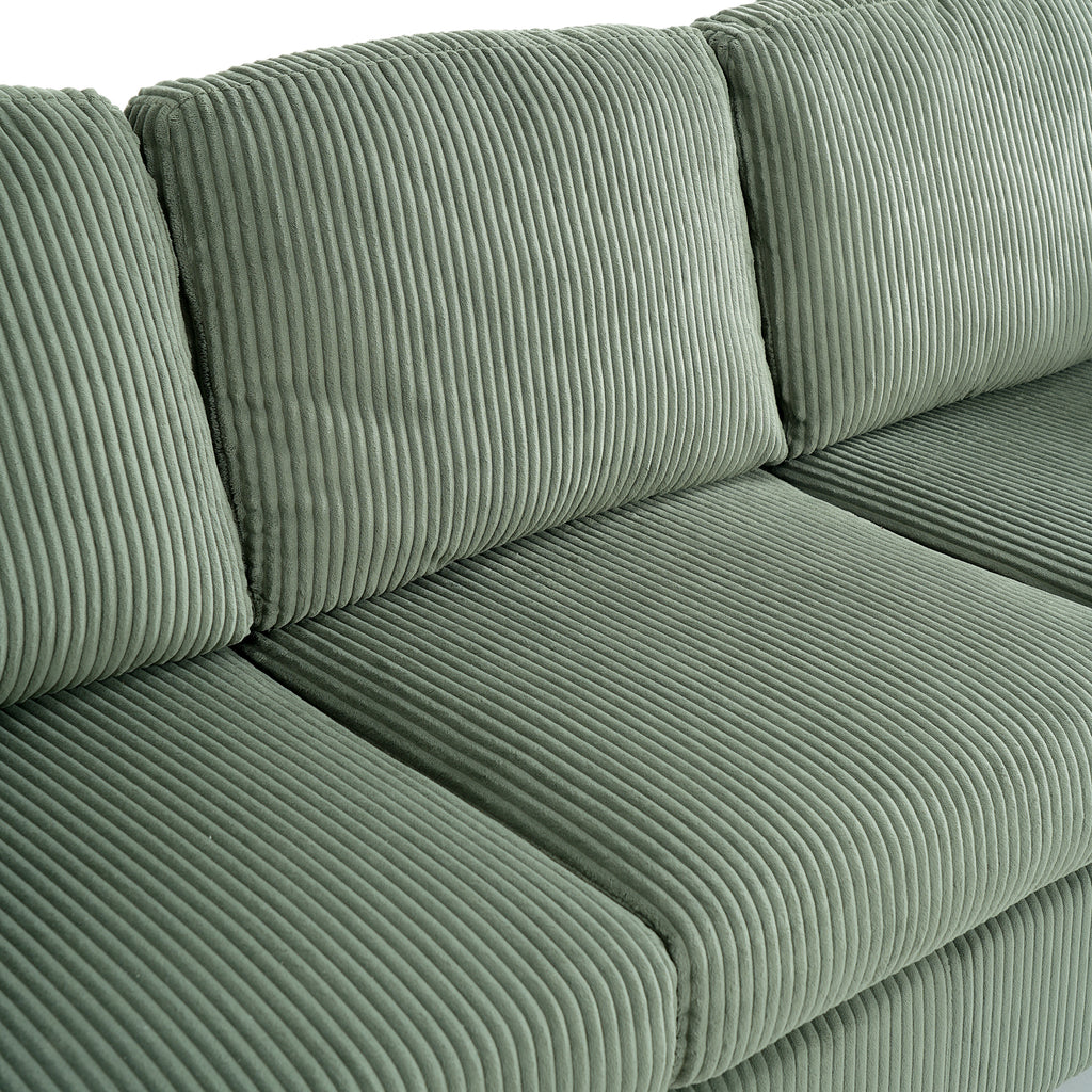L-Shaped Sofa with Padded Corduroy: Multi-functional Design, Modern Luxury Appearance - Ideal for Living Rooms, Apartments - Easy Assembly & Maintenance,Olive Green