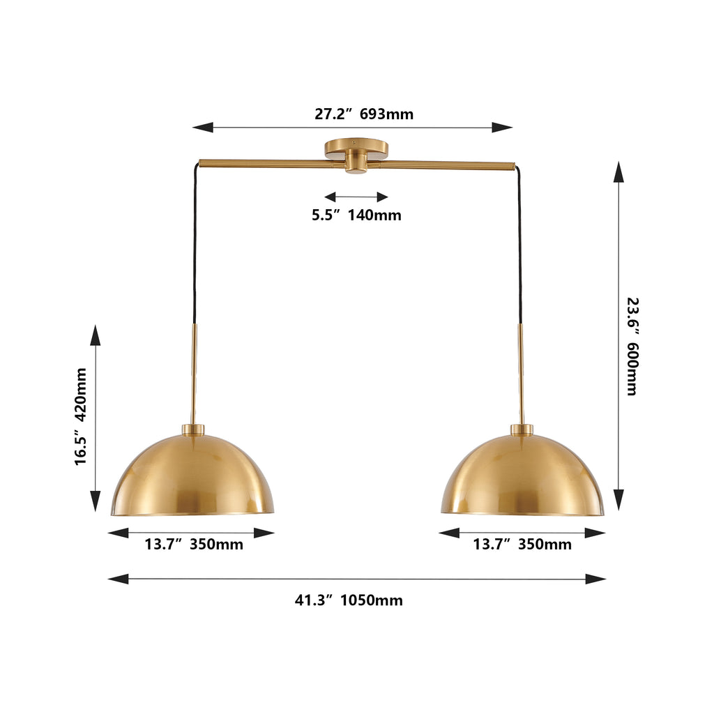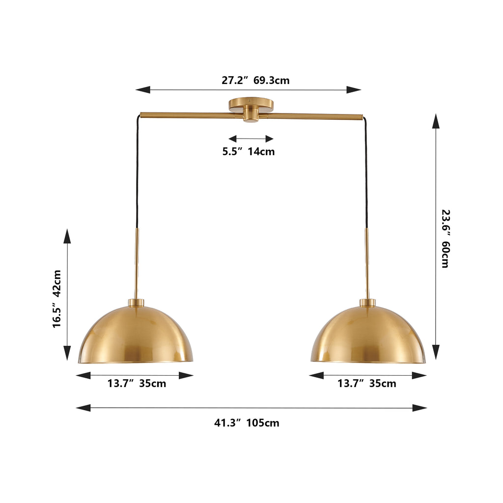 Industrial Modern Copper Color Double Pendant Light Adjustable Ceiling Hanging with Bright Finish