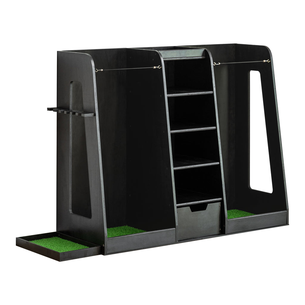 • 【Golf Club Storage Area】For easy access and organization, our storage racks come with a side bracket with club holders, allowing you to easily switch clubs during use.