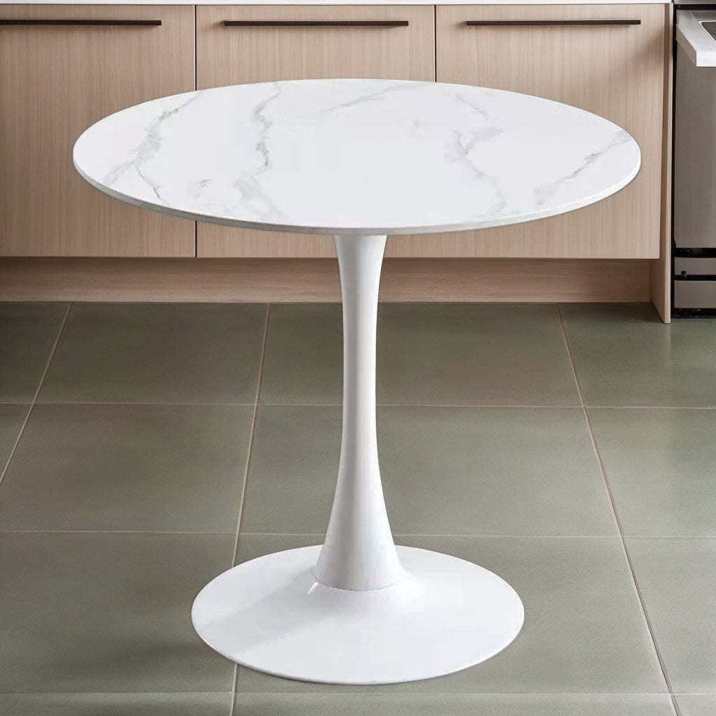 Marble Texture Round Table, Dining Table, Modern Dining Table,Kitchen Table, MDF Top and Steel Base Tulip Round Kitchen Table, Mid Century Coffee Table for Living Room 24 Inch,Mother's day