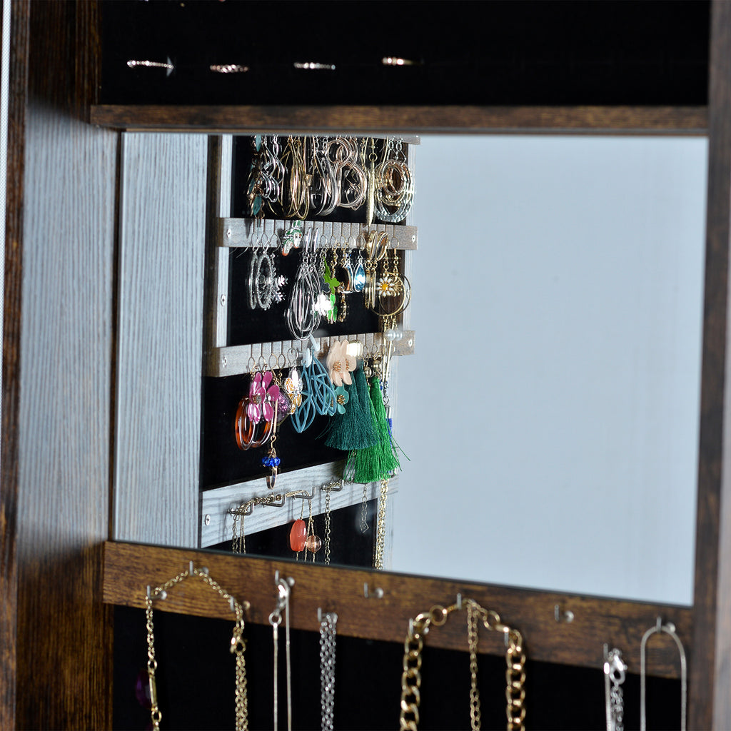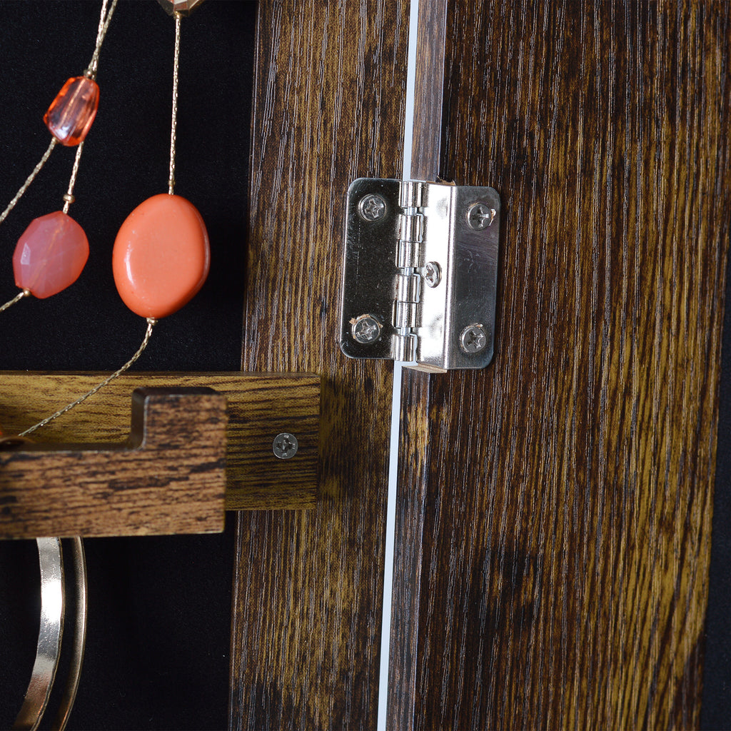 - Ample storage:includes 22 necklace hooks,2 cubes,4 lined shelves and a bracelet rod,and plenty of room for rings and eqrrings.it can hold on the door or wall.