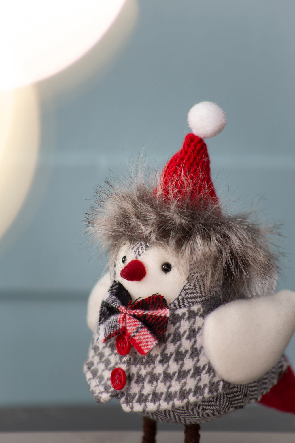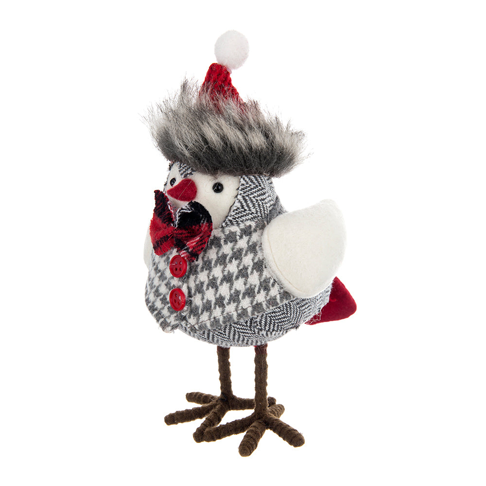 3.9x4.3x6.3' Fabric Bird W/Plaid Bow-Tie&Red Hat, 2 Pack
