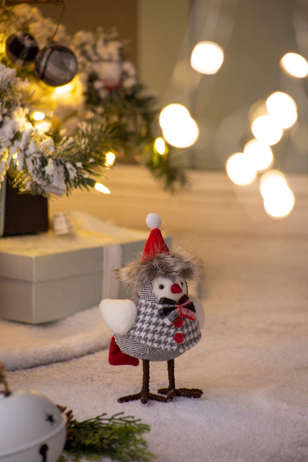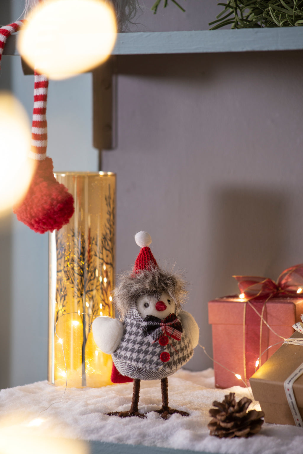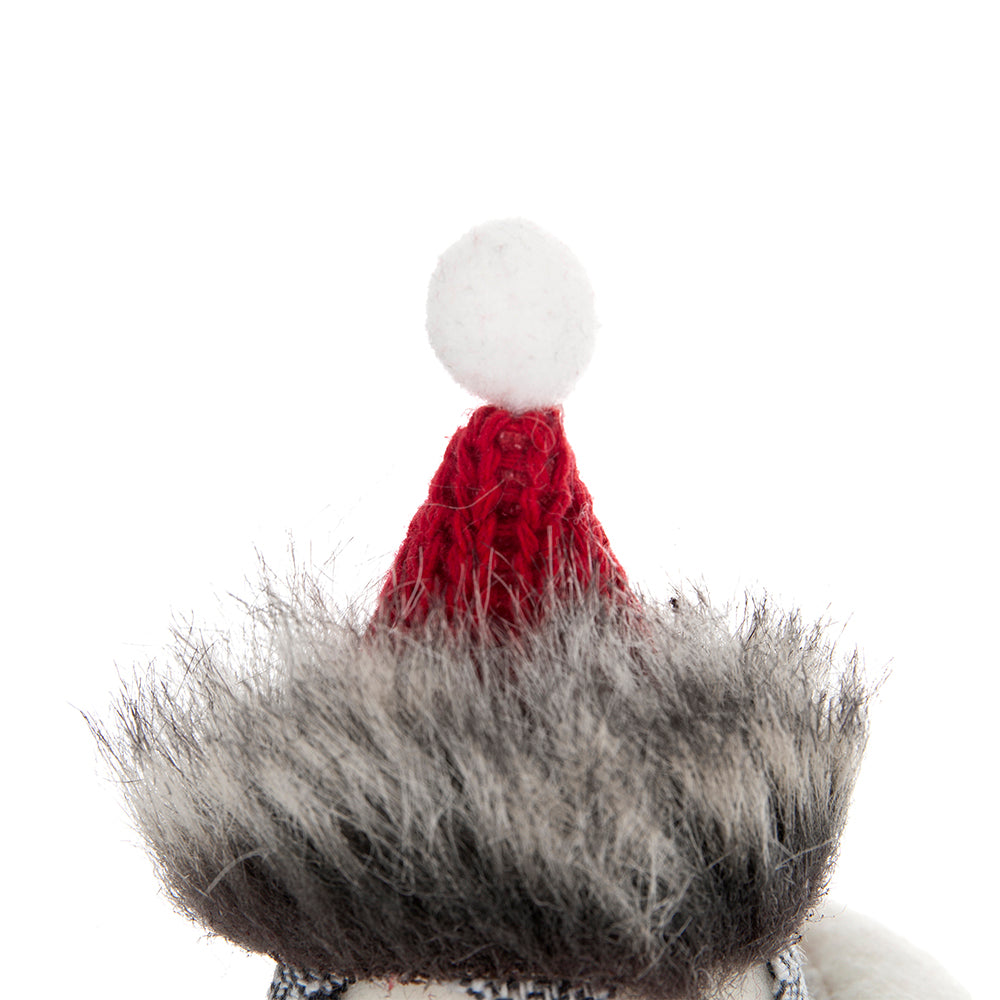 • Perched jauntily atop its head is a miniature, perfectly-proportioned red fabric hat, complete with a fuzzy white pompom – instantly evoking classic holiday warmth.