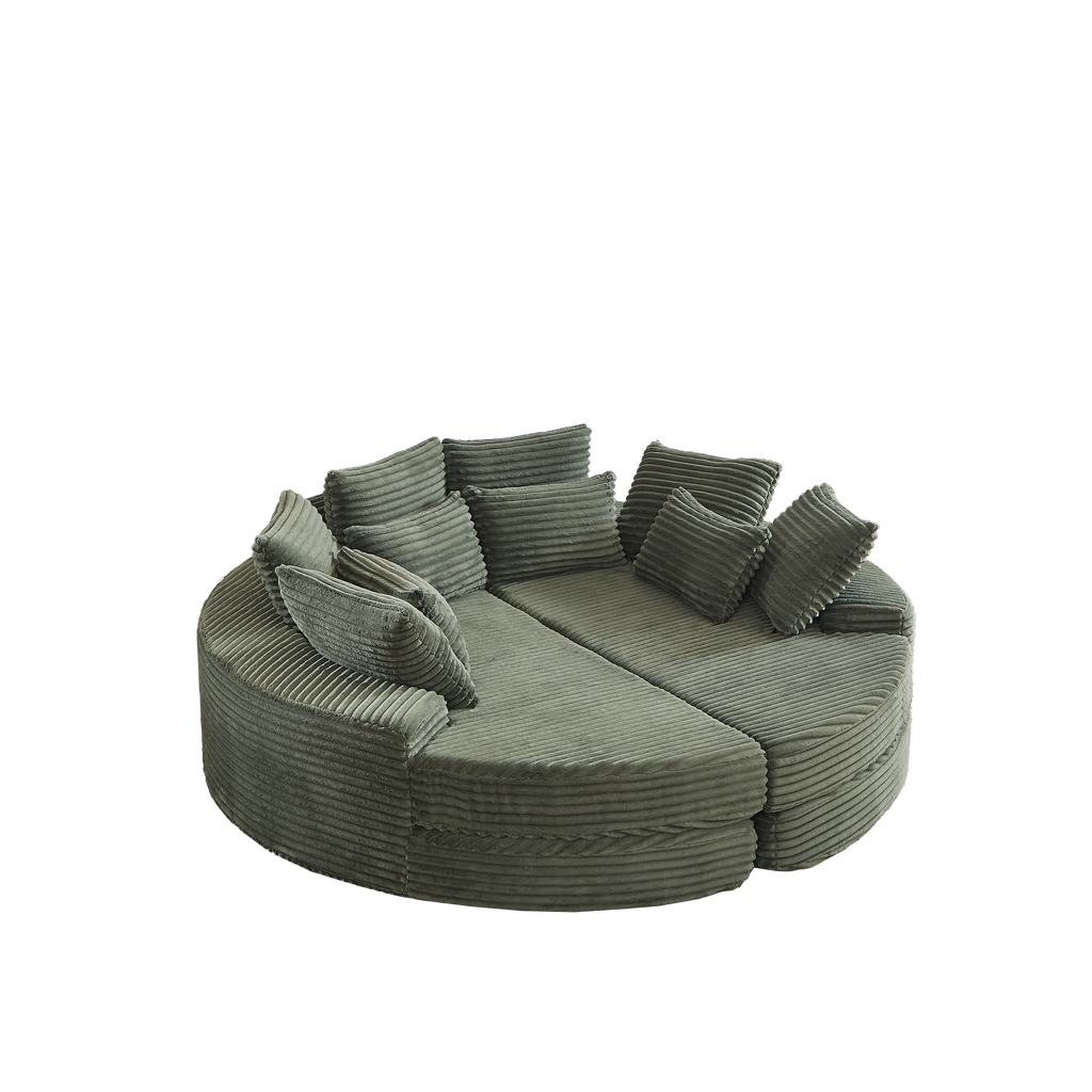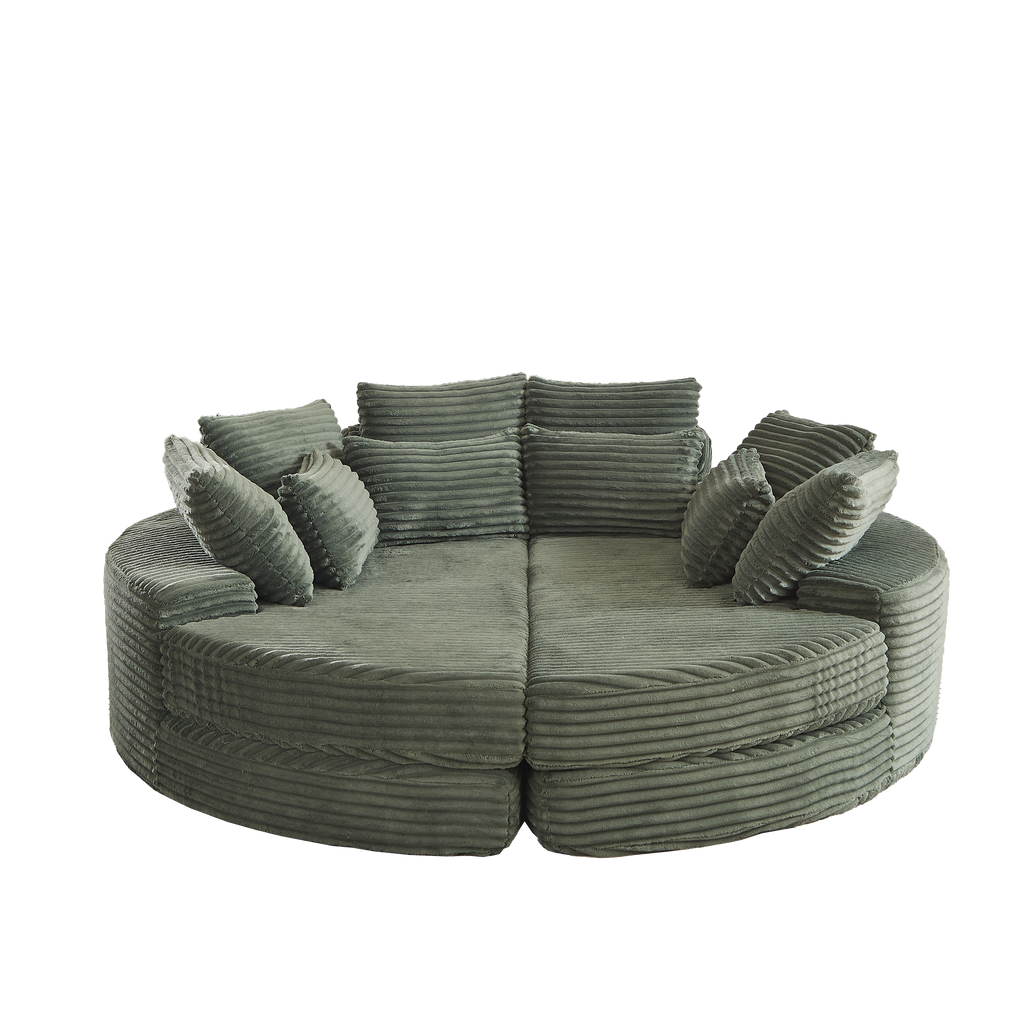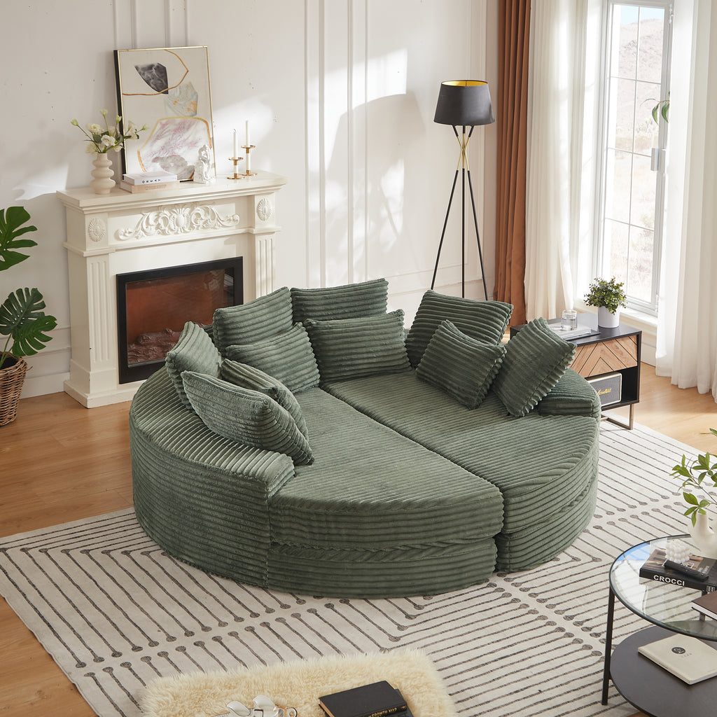 78.5-inch Corduroy Round Oversized Recliner, Converts into Two Recliners, 2-In-1 Sofa Bed, Neck Pillow Design With Five Throw Pillows