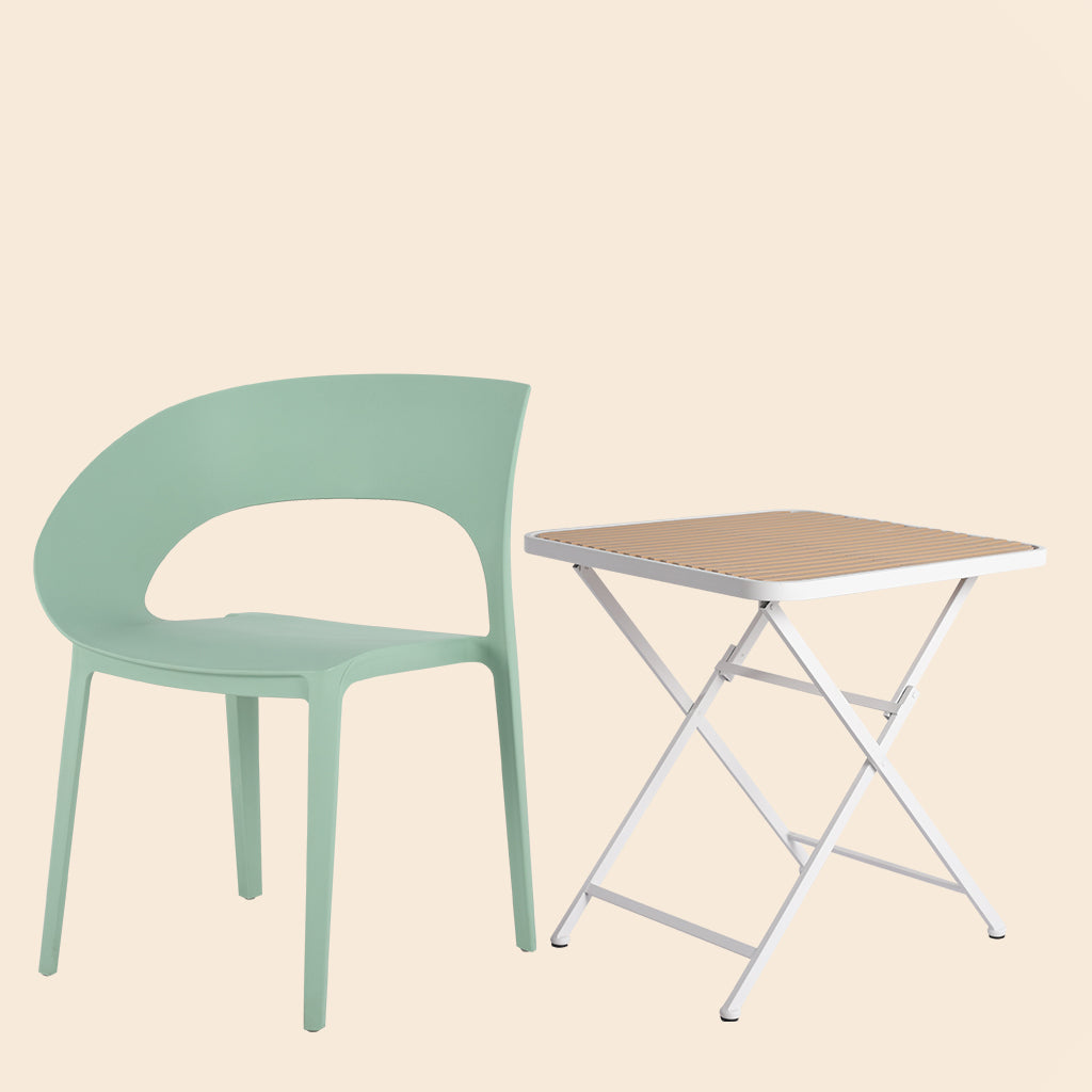 Haze Green Polypropylene Single-Side Chair- One-Piece Design for Indoor & Outdoor Use with Modern folding indoor/outdoor multi-functional square table- PP tabletop with metal legs(White, khaki)
