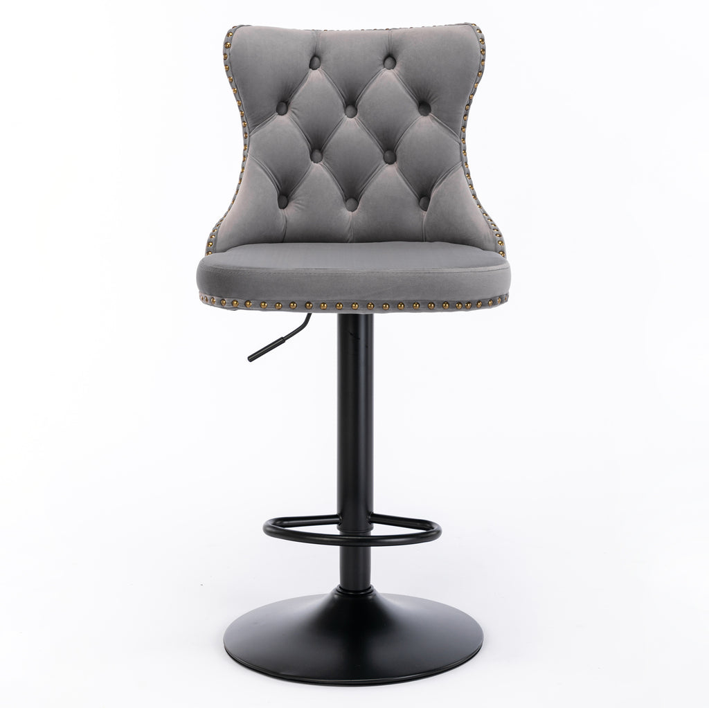 Swivel Velvet Barstools Adjusatble Seat Height from 25-33 Inch,17.7 inch base, Modern Upholstered Bar Stools with Backs Comfortable Tufted for Home Pub and Kitchen Island,Gray,Set of 2,AS1812GY