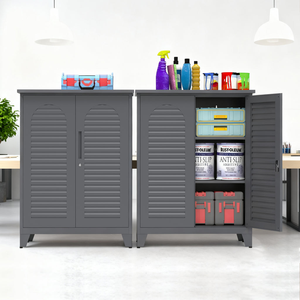 • 【Multi-scenario Applications】Boasting multi-scenario application, this tool cabinet fits perfectly in garages, workshops, warehouses, home basements, gardens, outdoor spaces and bathrooms. Ideal for tools, gardening gear, outdoor essentials and bathroom supplies, it meets diverse storage needs, bringing convenience and keeping spaces tidy wherever organized storage is required.