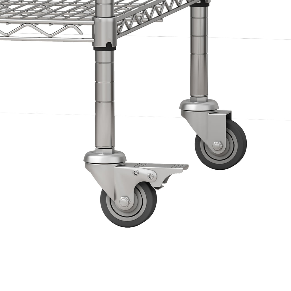 • Convenient Caster Wheels: Equipped with 4 swivel wheels and 4 leveling feet, it's easy to move the shelf around when needed, like for cleaning or rearranging. You can also lock the wheels to keep it stationary. The wheels can be removed and replaced with adjustable feet if desired.