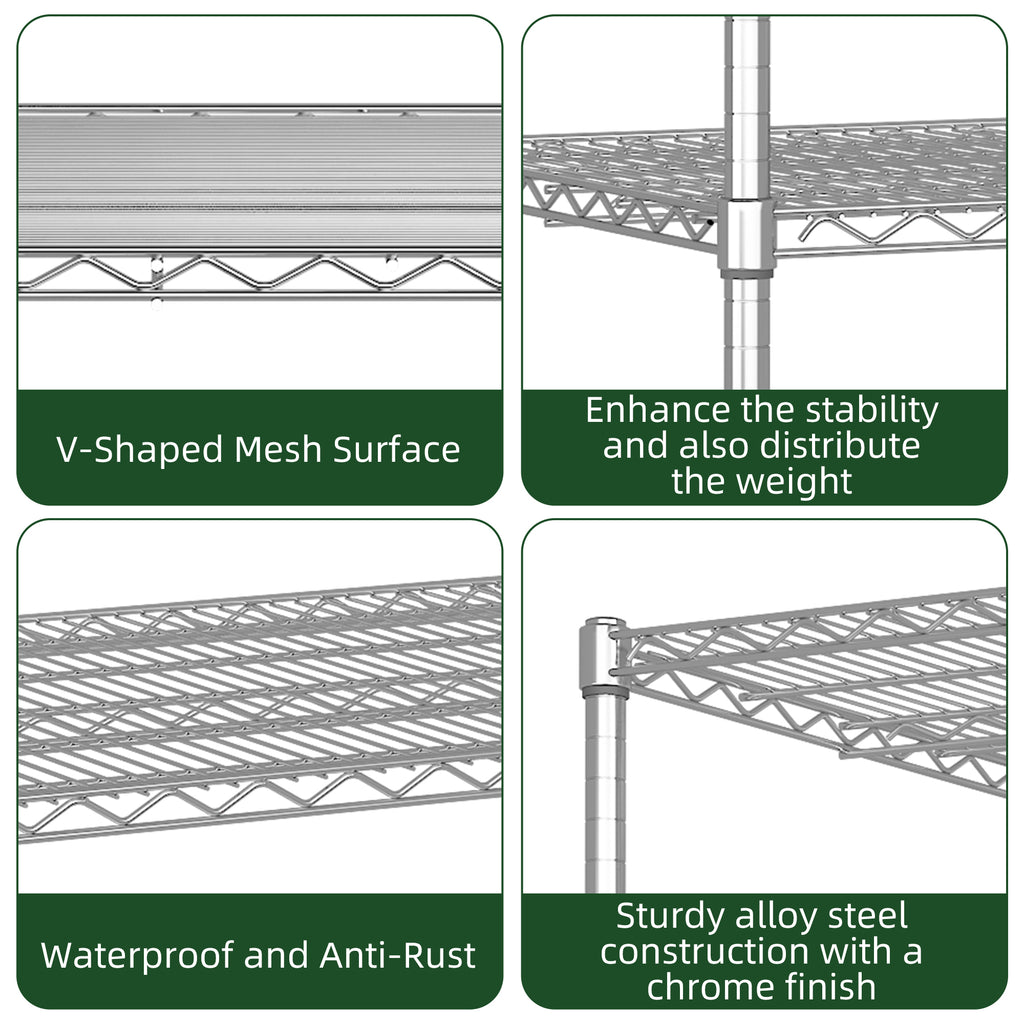 • Heavy - Duty Weight Capacity: Crafted from sturdy alloy steel, this shelving unit can hold up to 2000 lbs in total. Each shelf supports 400 lbs, allowing you to store heavy items with confidence. It's built to last and handle all your storage needs.