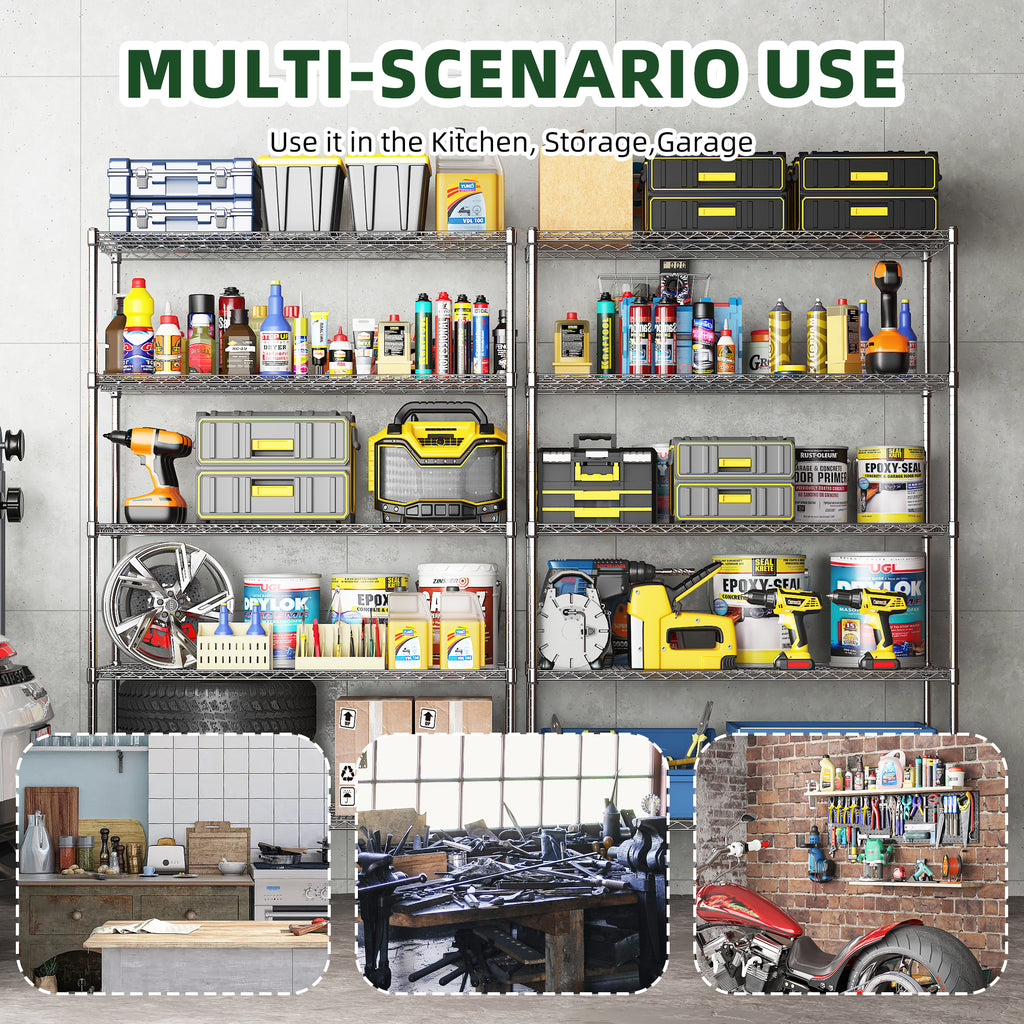 • Versatile Applications: This shelf is suitable for a wide range of places. Use it in the garage, warehouse, basement, kitchen, pantry, closet, laundry room, store, shed, office, balcony, or commercial space. It can also serve as a fish tank or reptile enclosure stand, optimizing space and organization.