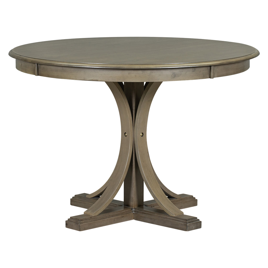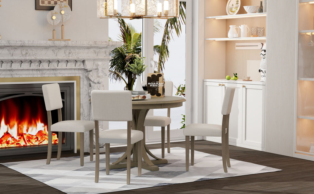TREXM 5-Piece Retro Round Dining Table Set with Curved Trestle Style Table Legs and 4 Upholstered Chairs for Dining Room (Taupe)