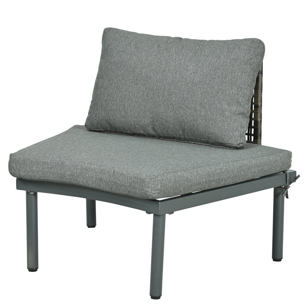 This 6-piece set includes 4 independent armless sofas and 2 high-low round coffee tables, allowing you to arrange them freely to fit any outdoor space. Perfect for creating a customized seating area in your backyard, patio, or poolside.
