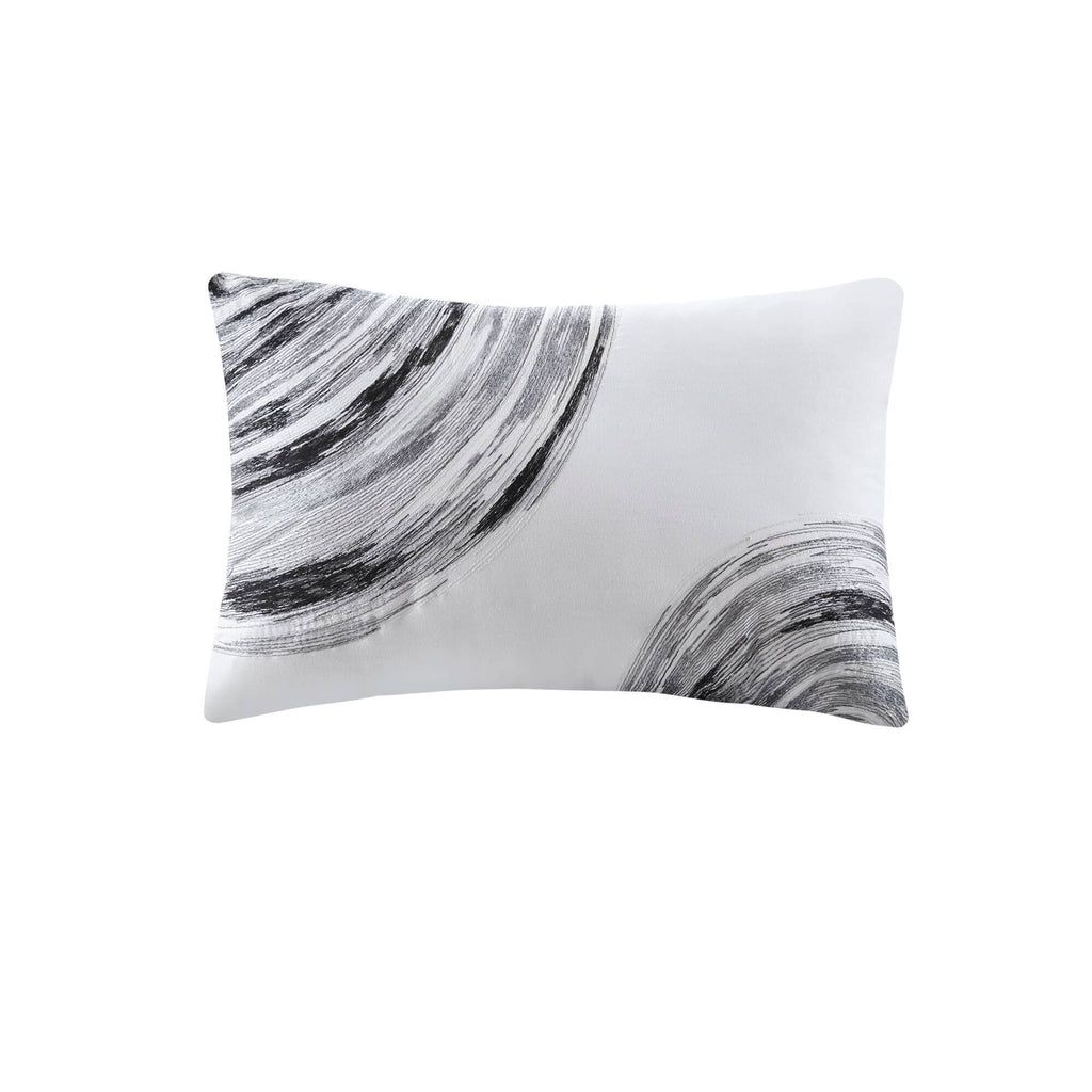 • The matching shams (1 in Twin Sizes) mirror the pattern of the comforter, while an embroidered decorative pillow and a solid grey bed skirt to complete the bedding set.