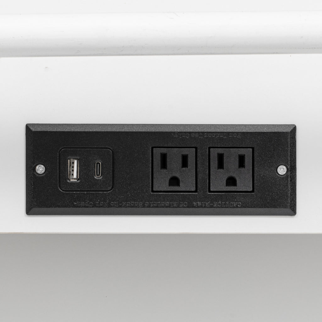 This exquisitely designed kitchen cart features a sophisticated built-in charging station, boasting 2 AC outlets, 1 USB, and 1 Type-C port to effortlessly accommodate all of your kitchen appliance power requirements.