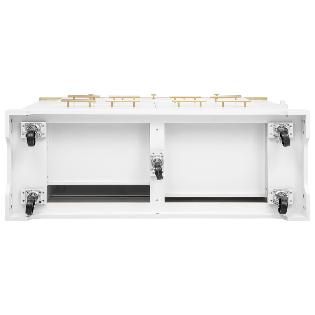The strong island base is essential for providing stability and support for the entire cart structure. You can choose to use wheels or not apply wheels as a stationary side cabinet or island.