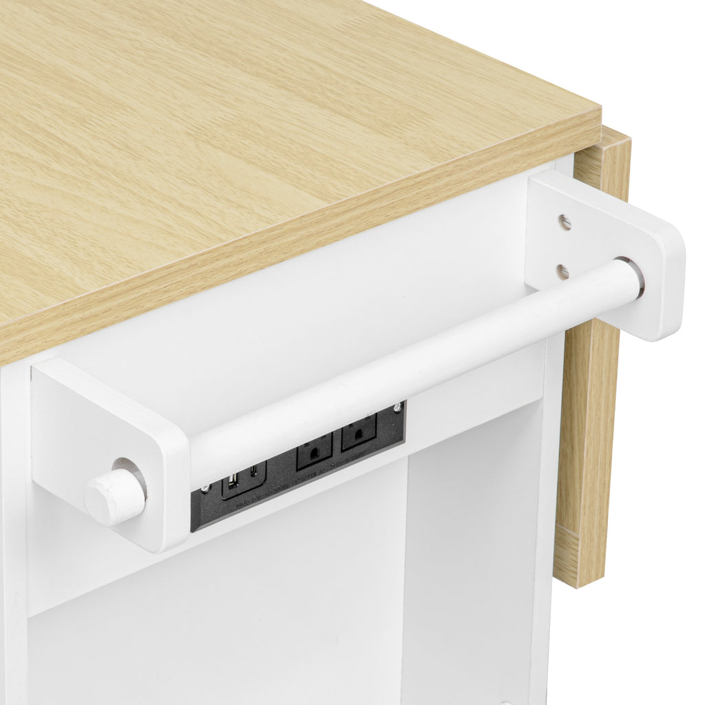 • [Convenient Charging Station] Say goodbye to tangled charging cables and embrace the convenience of a built-in charging station. This elegantly designed kitchen cart features a sophisticated integrated power outlet, equipped with 2 AC outlets, 1 USB port, and 1 Type-C port to effortlessly accommodate all your kitchen appliance power needs. You can conveniently charge your coffee maker, juicer, and toaster on the countertop of this versatile kitchen storage island.