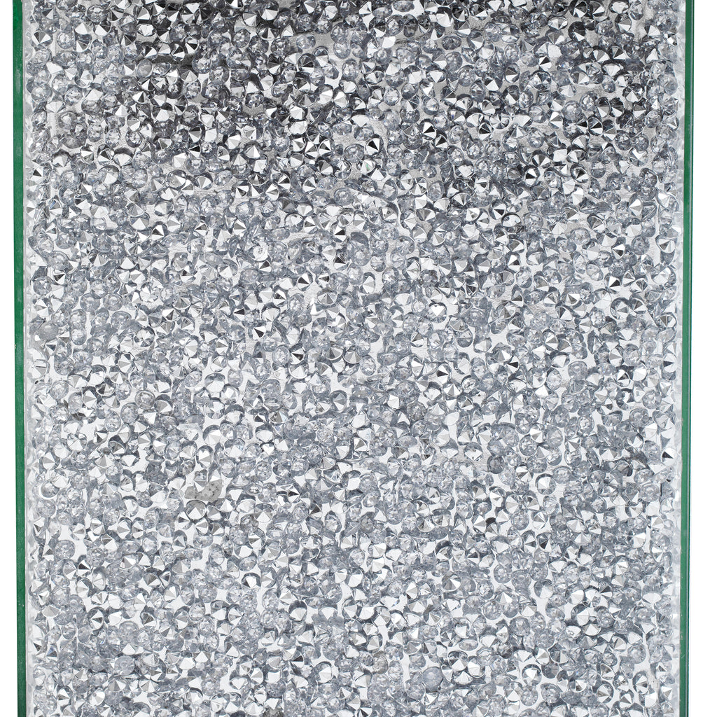 • The end table is adorned with meticulously placed crushed diamond accents that sparkle and shine in the light. These crushed diamonds are set into the middle part, creating a dazzling effect that adds a touch of opulence to the piece.