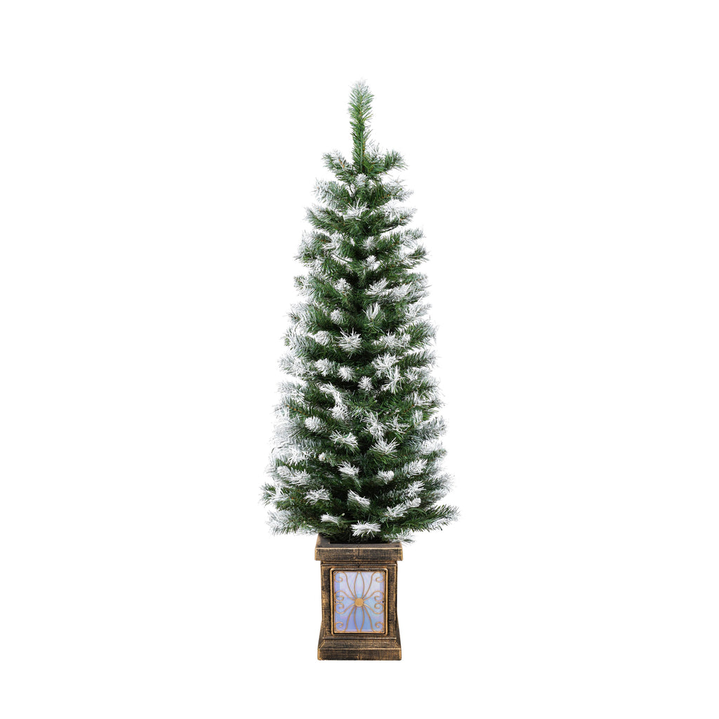 • Lighted Christmas tree gives you even lighting for festive styling. Enjoy the sparkle of lights pre-attached to the branches for easier and faster setup. Out of the box and into your home in minutes. Fast-open hinged branches and easy fit connections make it easy to take down and store for the off season.