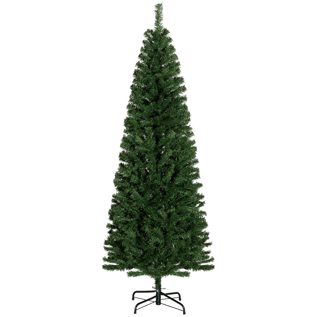 HOMCOM 6ft Pencil Christmas Tree, Unlit Artificial Christmas Tree Slim Douglas Fir Xmas Tree with Realistic Branches, Halloween Tree with 618 Tips, Green