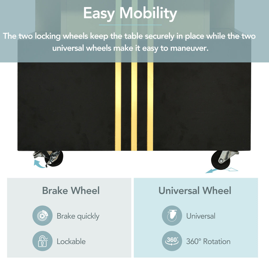 One of the most convenient features is the caster wheels on the bottom, which allow you to easily move the table. The two locking wheels keep the table securely in place while the two universal wheels make it easy to maneuver.