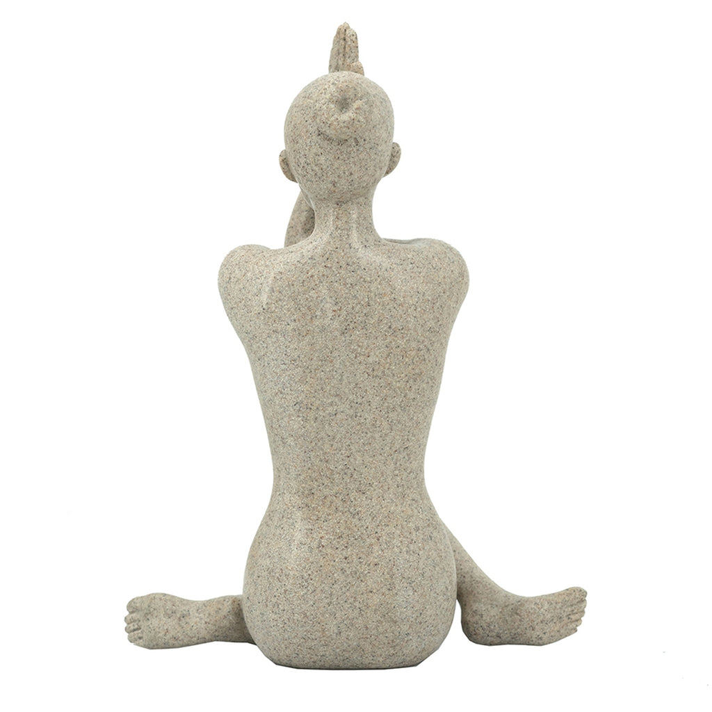 • Blending the tranquil beauty of the human form with earthy charm, this figurine showcases a masterful take on the Anjali Mudra pose, complete with crossed legs and a natural beige finish.