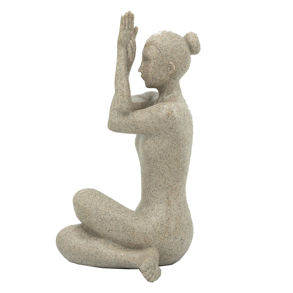 Blending the tranquil beauty of the human form with earthy charm, this figurine showcases a masterful take on the Anjali Mudra pose, complete with crossed legs and a natural beige finish. Perfectly sized for any tabletop, mantel, sideboard, or shelf, it is certain to inspire mindfulness in any space.