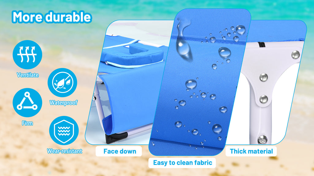 3-in-1 Heavy Duty Tanning Chair with Face Hole Adjustable 5-Position Folding Chaise Lounge Chairs for Outside Portable Lay Flat Beach Lounge Chair for Outdoor Sunbathing Patio Pool Lawn Camping Deck P