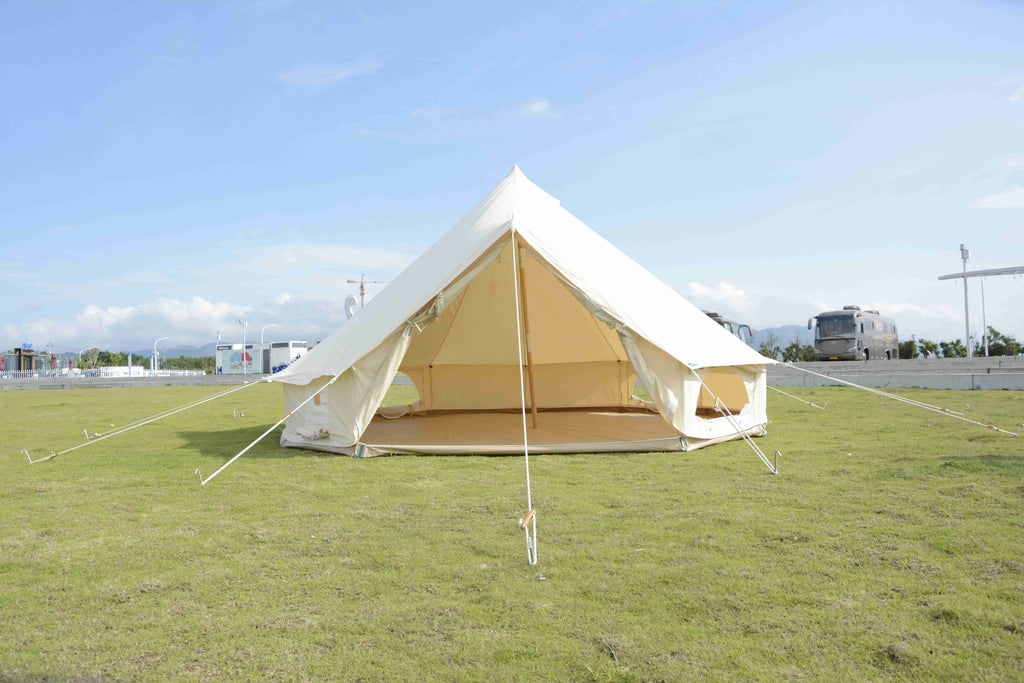 • [Perfect for Family Camping] – The 4M canvas tent bell tent has a diameter of 13 feet, a peak height of approximately 8 feet, and side wall height of 1.9 feet, providing ample space for 2-4 people and allowing you to stand inside. The 5M bell tent measures 16.5 feet in diameter, with a height of up to 9 feet and a sealed bottom perimeter that is insect-proof, making it perfect for family camping.