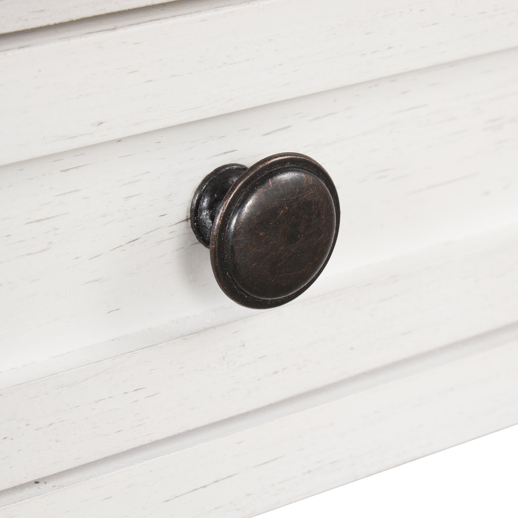 - [Simple and Classic Style]- In a simple and classic style, this side table brings vintage atmosphere to your living area. All surfaces of the entryway table is coated with high quality painting, and the table top is ised. Meanwhile, there are two kinds of handles for the drawers. The top drawers feature with vintage carved round antimon handles, while the bottom drawers feature modern hidden antimon handles.