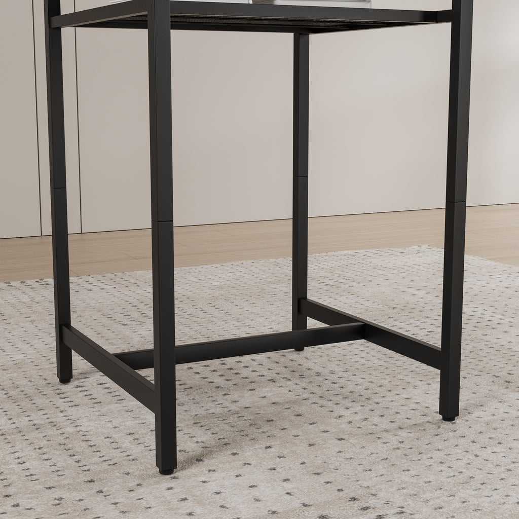 - [Fashion appearance]: The table and bar stool are covered with wood grain and black coated metal frame, which looks very chic. This sturdy and well-made chair will add a fashionable and high-end feeling to any living space that complements modern decoration.