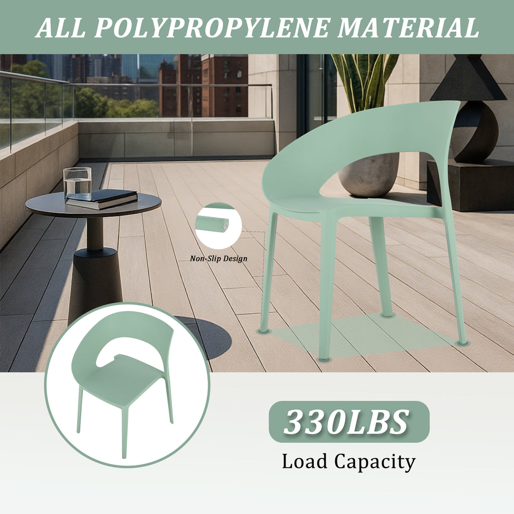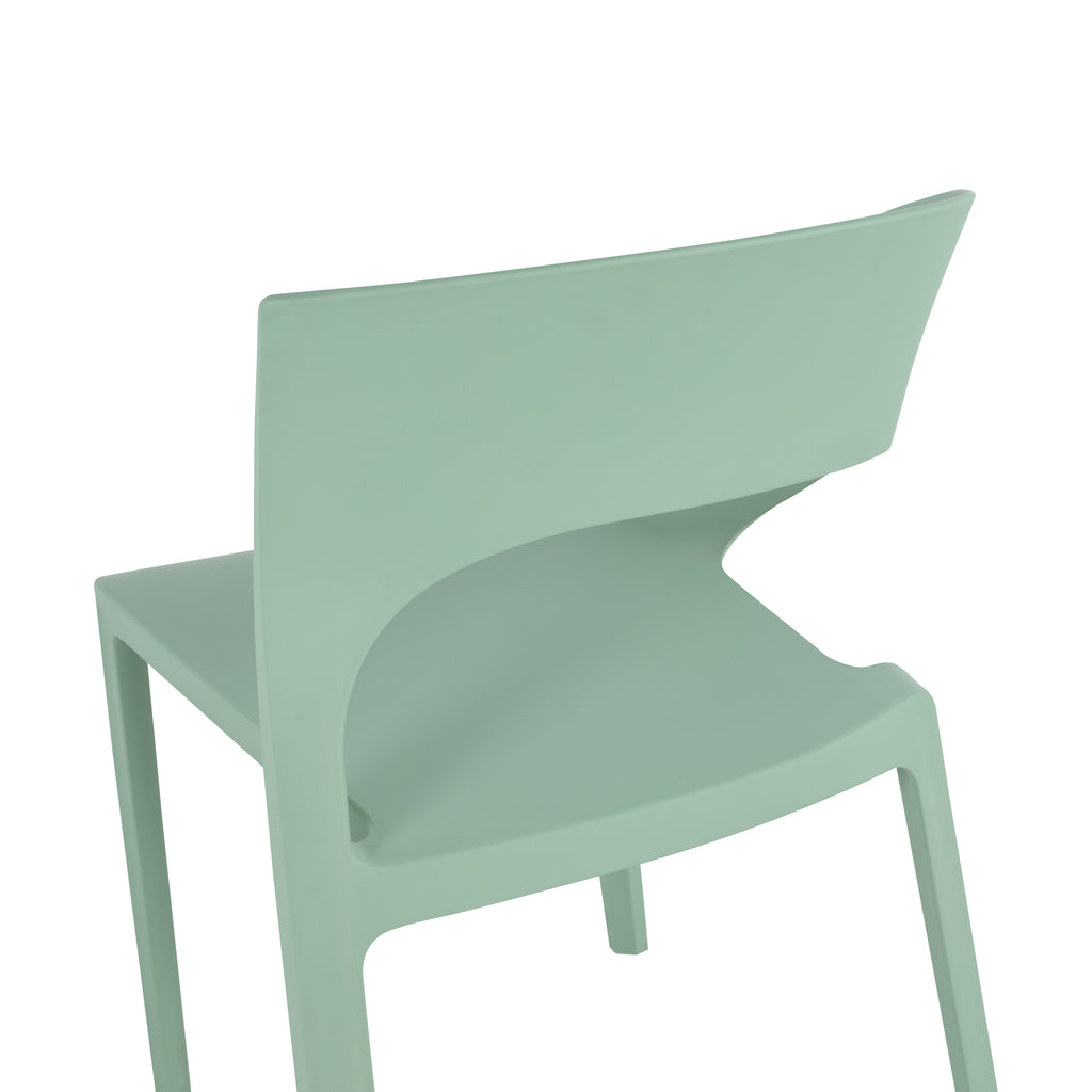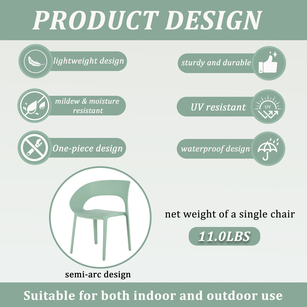 One-piece designed single chair, UV-resistant, waterproof and wear-resistant, in haze green. Dimensions: 21.26*23.6*32.48 (in). Polypropylene material.