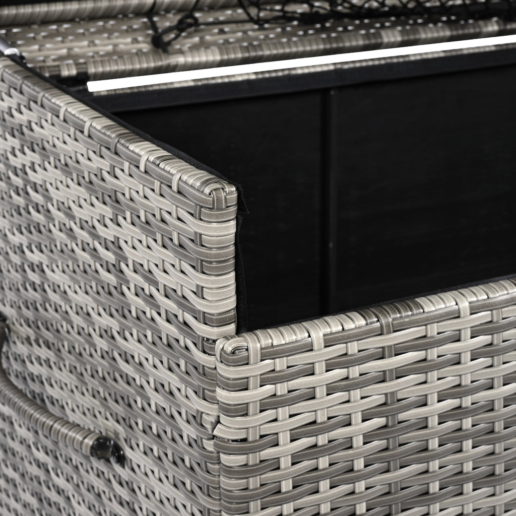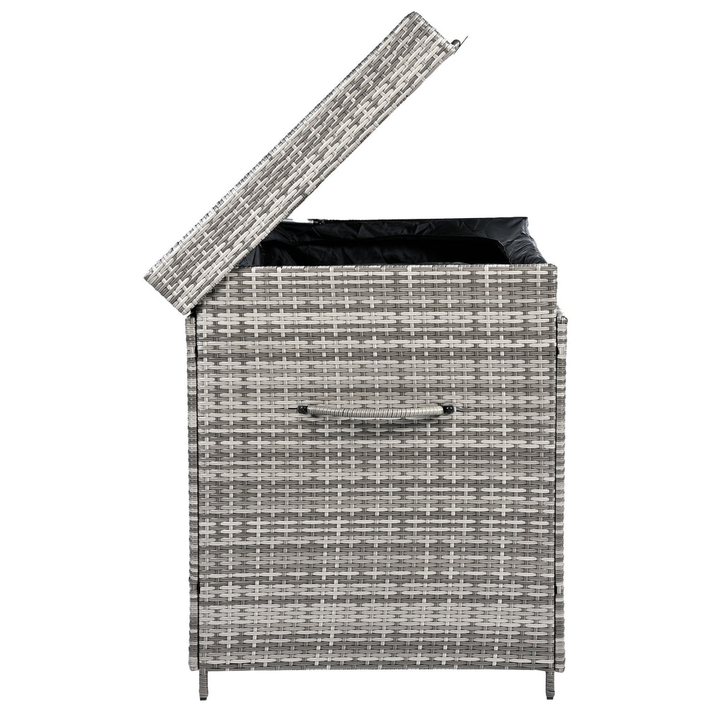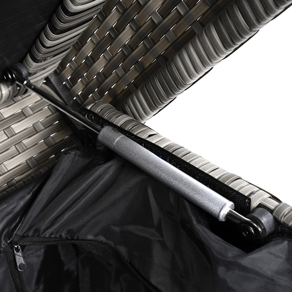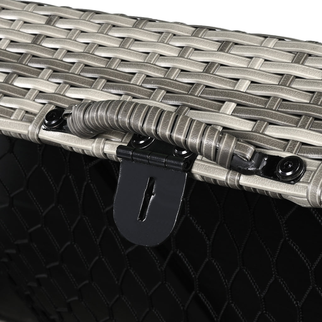 Highlights | [Spacious 230-Gallon Capacity][Steel Strip Bar Support] [1000H UV Resistant Wicker][Upgrade Hydraulic Pistons] [Lockable Lid][Full Coverage Lid][Smooth Front Lockable Wheels][Sturdy Handle] [Lower Front Board][Non-slip Feet][Weather-resistant Liner][Inner Bag] |