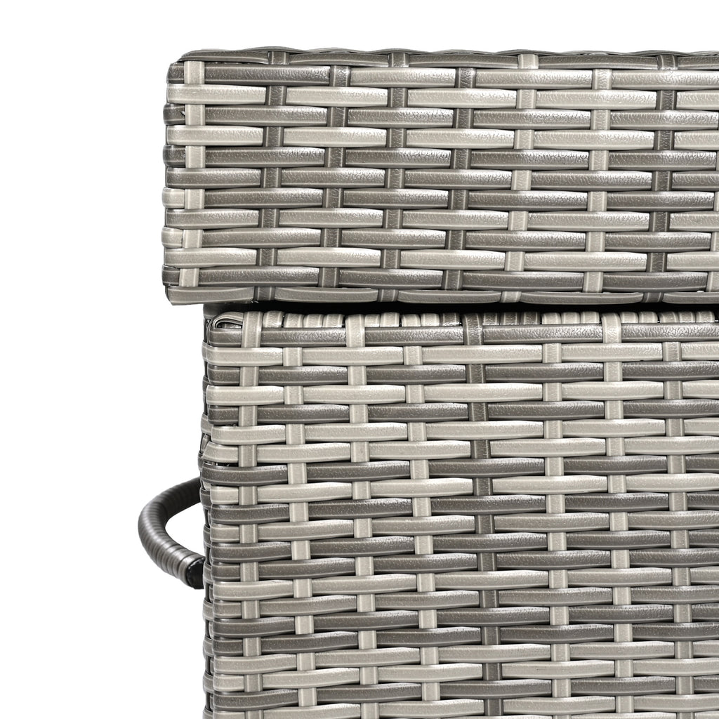 - [All-weather Resistance] The powder-coated steel frame is enveloped in all-weather hand-woven wicker, ensuring easy cleaning and remarkable resistance to sun, rain, heat, cold, cracking, sagging, or fading. The powder-coated steel frame offers a sturdy and durable structure for all your belongings. This wicker pool storage box includes a convenient zippered polyester storage bag and all-around PP panels to keep your items secure and dry.