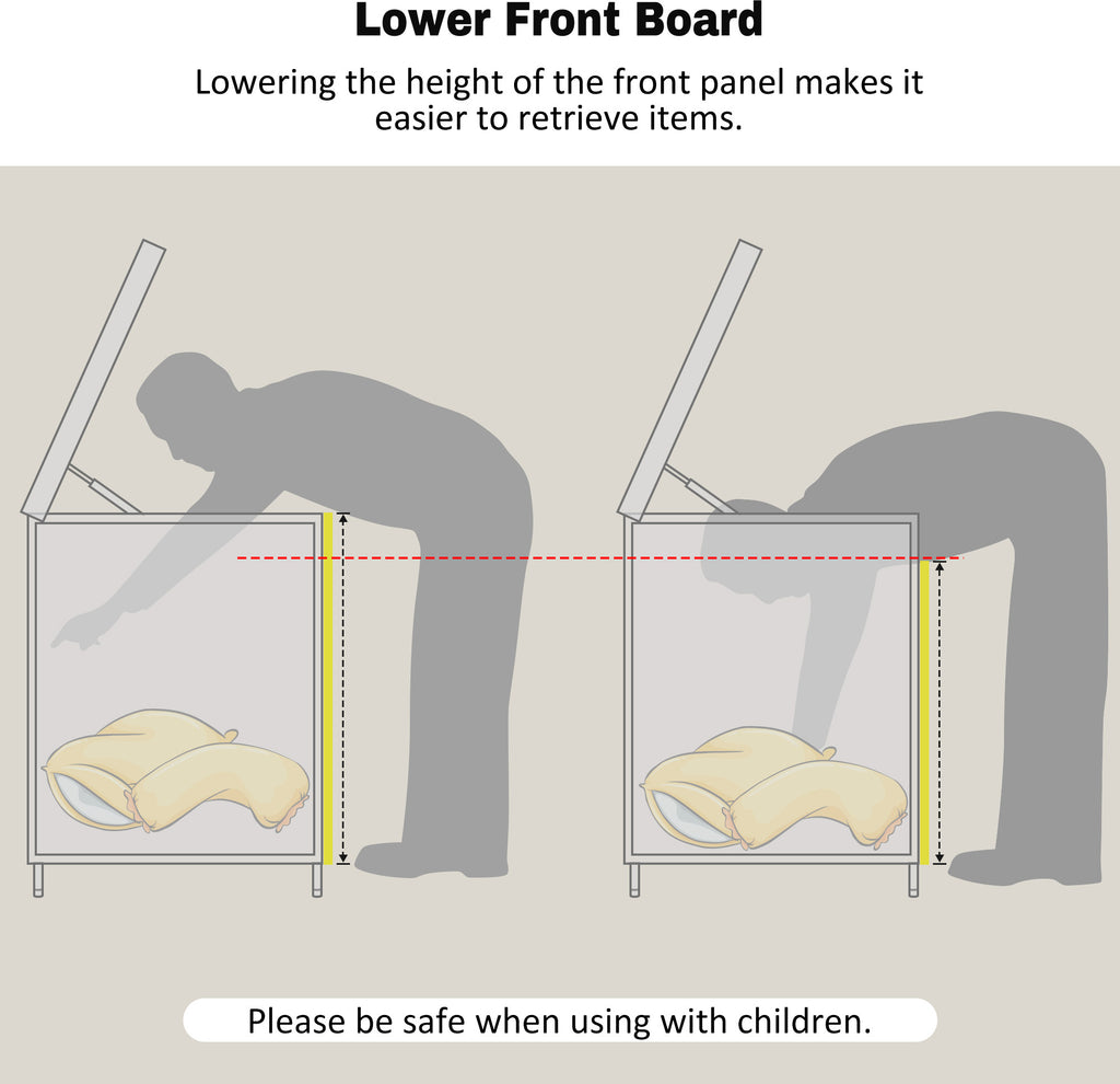 Lift assist and soft close keep hands free. Allowing the top to gradually open and close with minimal effort, which is excellent for preventing smashed fingers