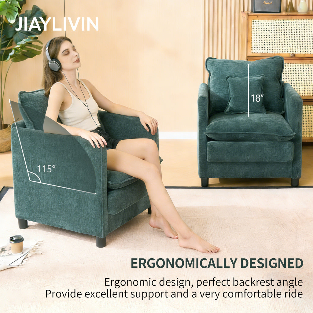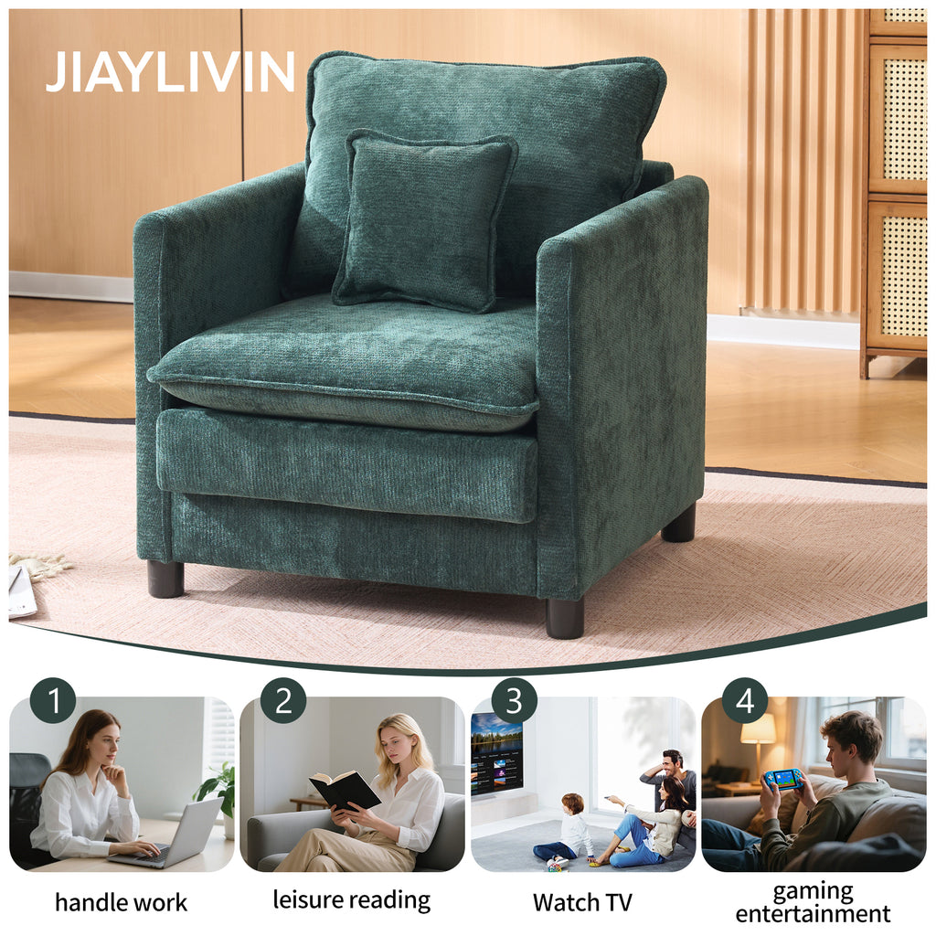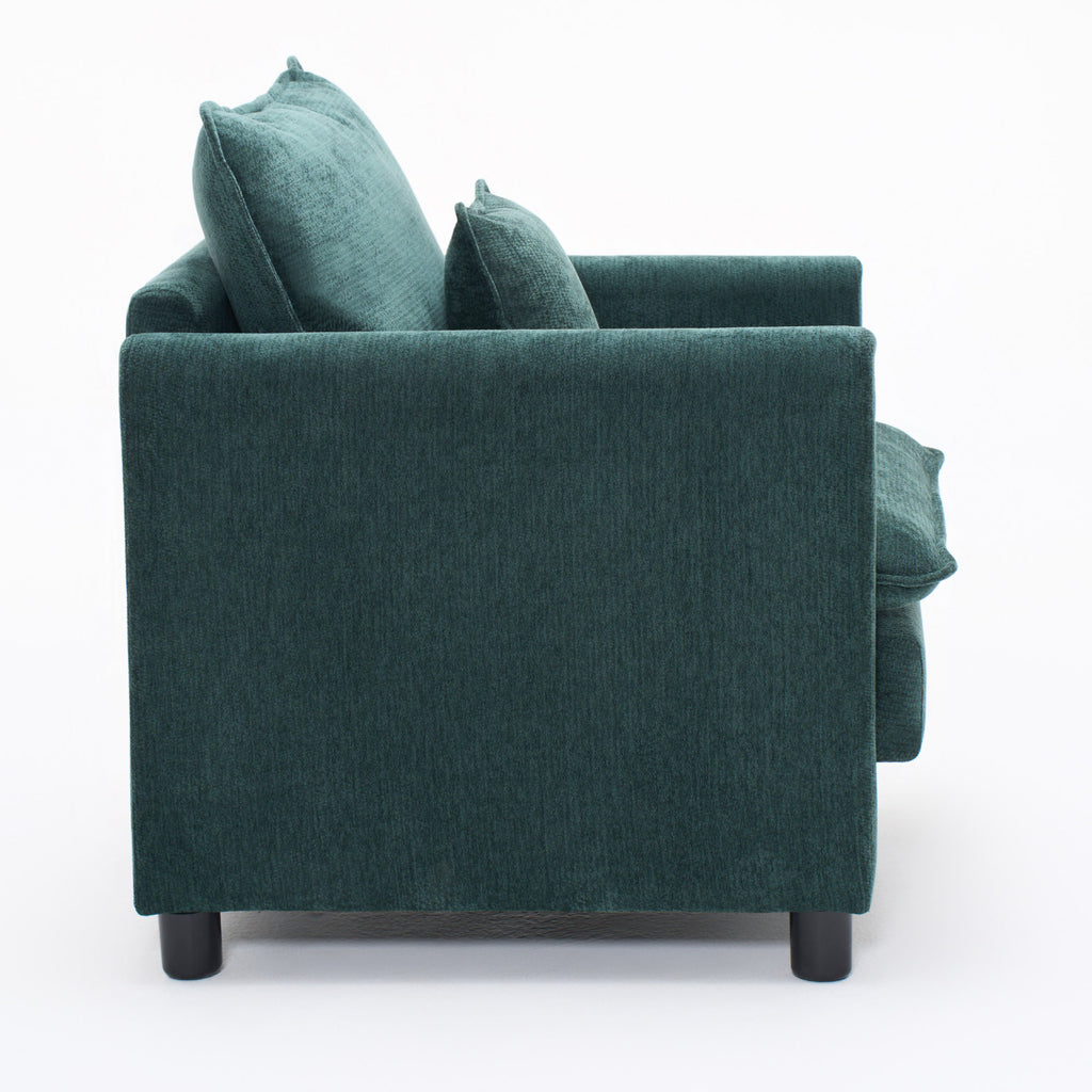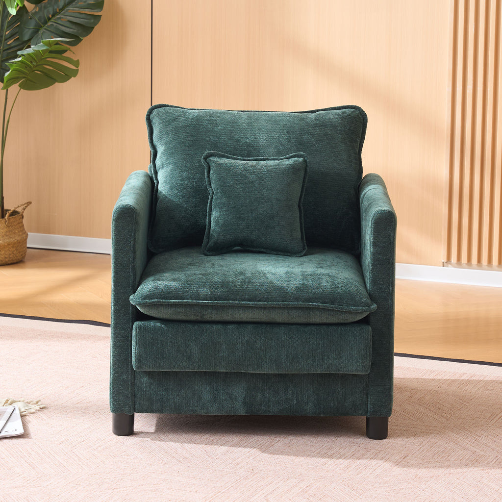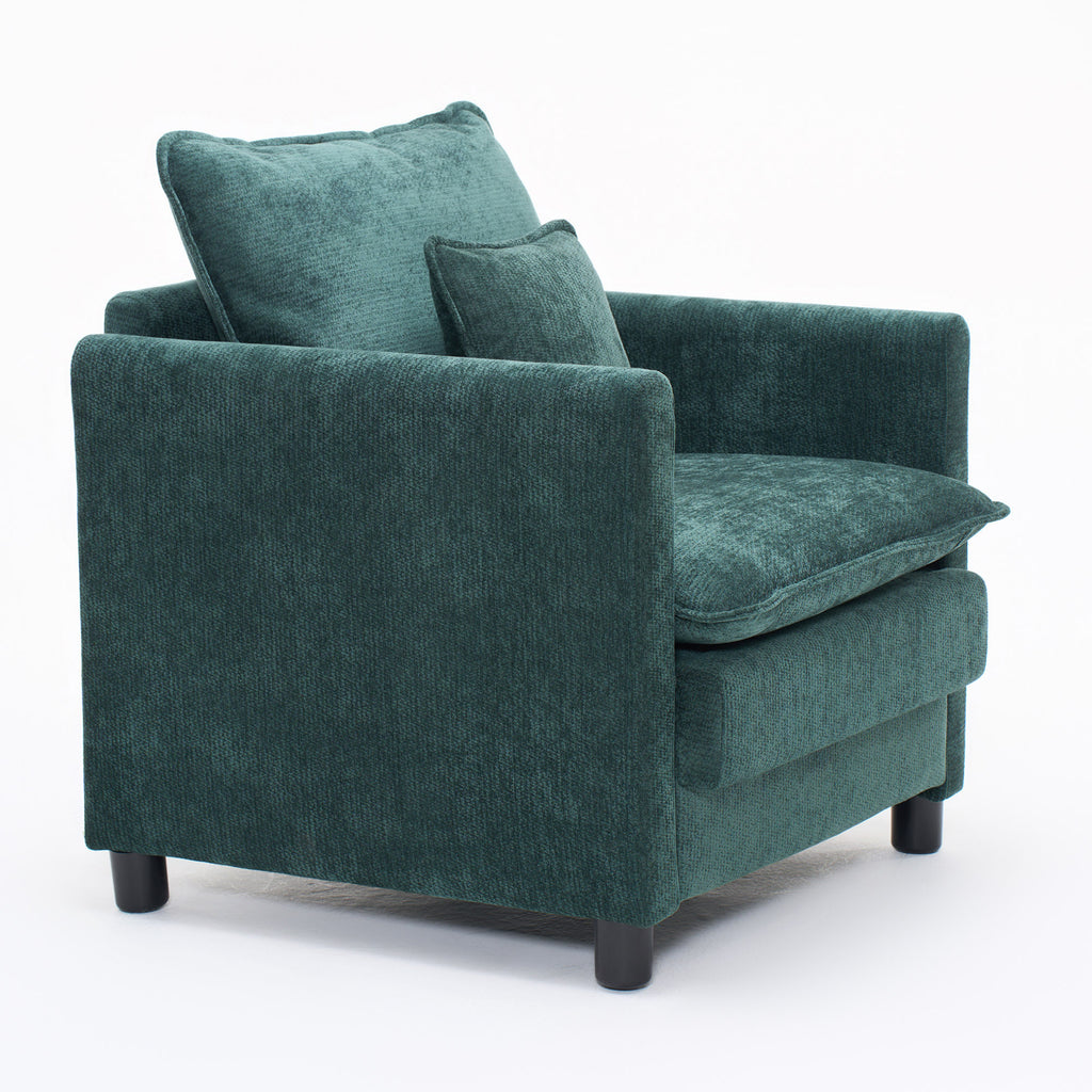 Modern Living Room Chair Single, Comfortable Lounge Armchair, Thick Padded Cushion with a 3-Pillow Comfort Set for Indoor Home, Dark Green