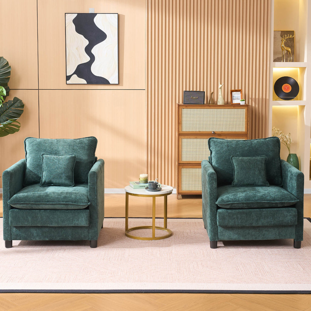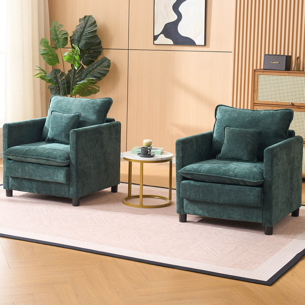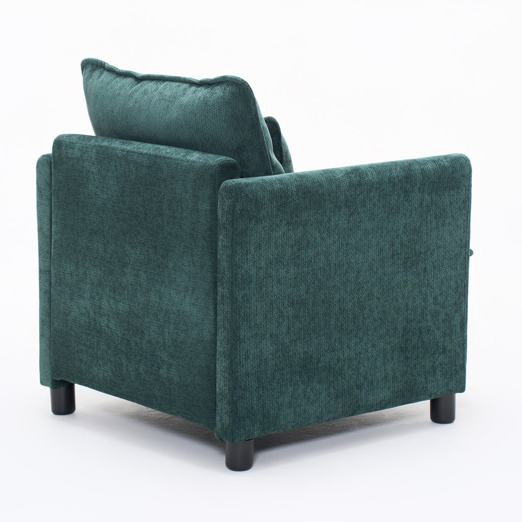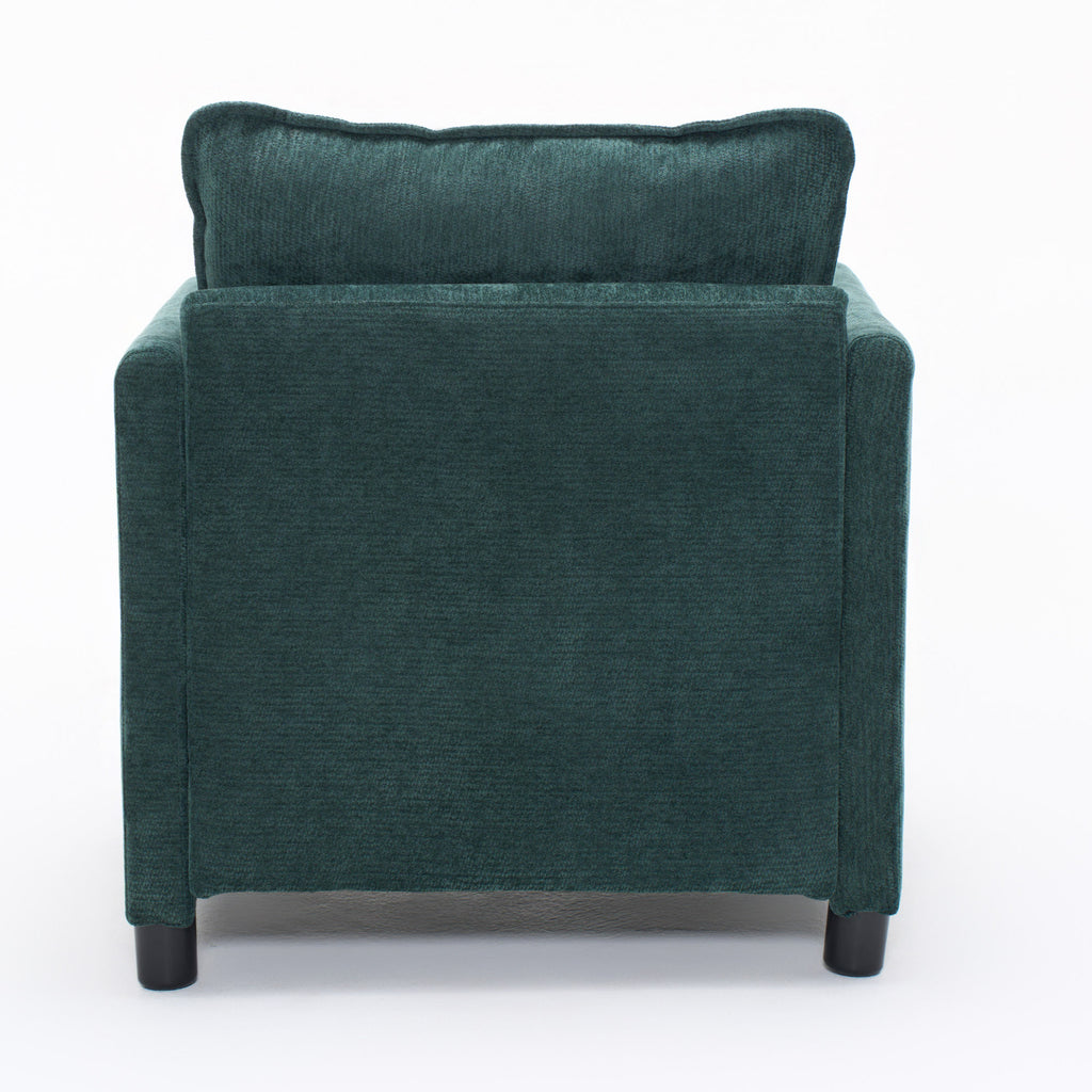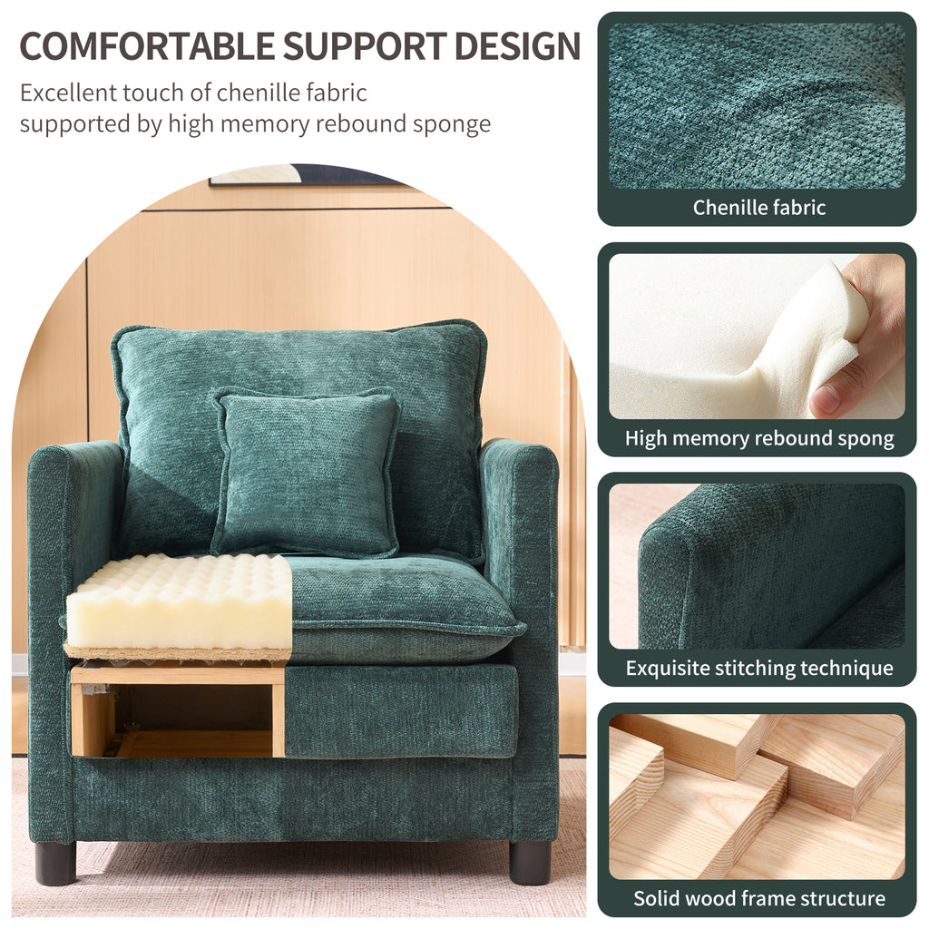 Modern Living Room Chair Single, Comfortable Lounge Armchair, Thick Padded Cushion with a 3-Pillow Comfort Set for Indoor Home, Dark Green