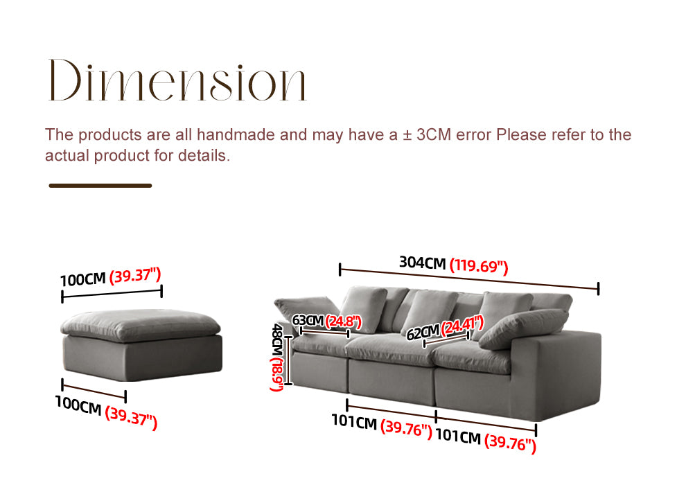 Cloud Modular Sectional Sofa, Oversized Sectional Couches for Living Room, Cushion Deep Seat Sofa Set, Corduroy L Shaped Couch with 1 Ottoman (Light Gray)