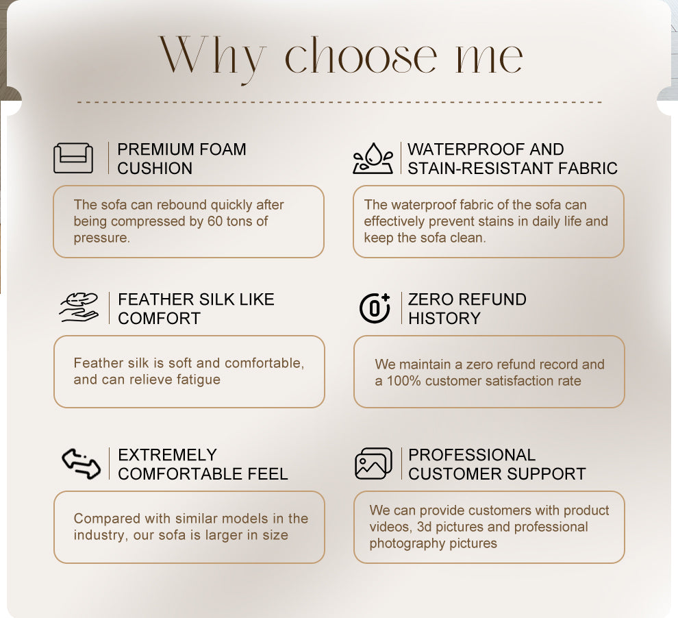 • Using 33D high density sponge (especially used for compression sofa) to provide better comfort and less deformation degree