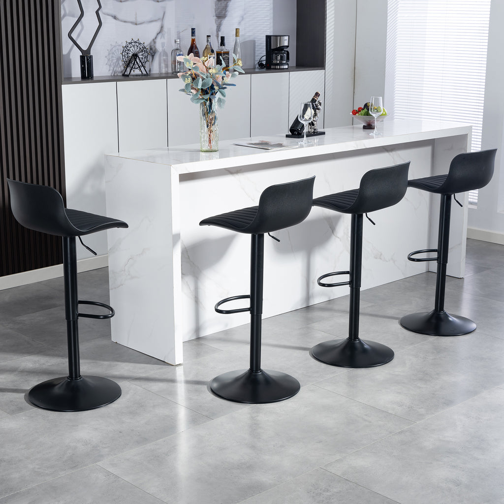 Bar Stools Set of 2 – Modern PU Leather Counter Height Barstools with Back, Height Adjustable Swivel Kitchen Island Chairs, Armless, Large Base-Black