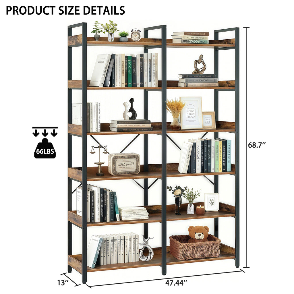 • {Large Capacity for Flexible Storage and Display}This 6-tier industrial bookshelf features 12 open shelves, providing ample storage space for books, photo albums, alarm clocks, plants, and various decorative items. It's both a practical storage rack and a stylish display for your favorite items. The simple and retro industrial design can easily adapt to various environments, including study, bedroom, living room, dining room and office, creating a space that is both practical and beautiful.