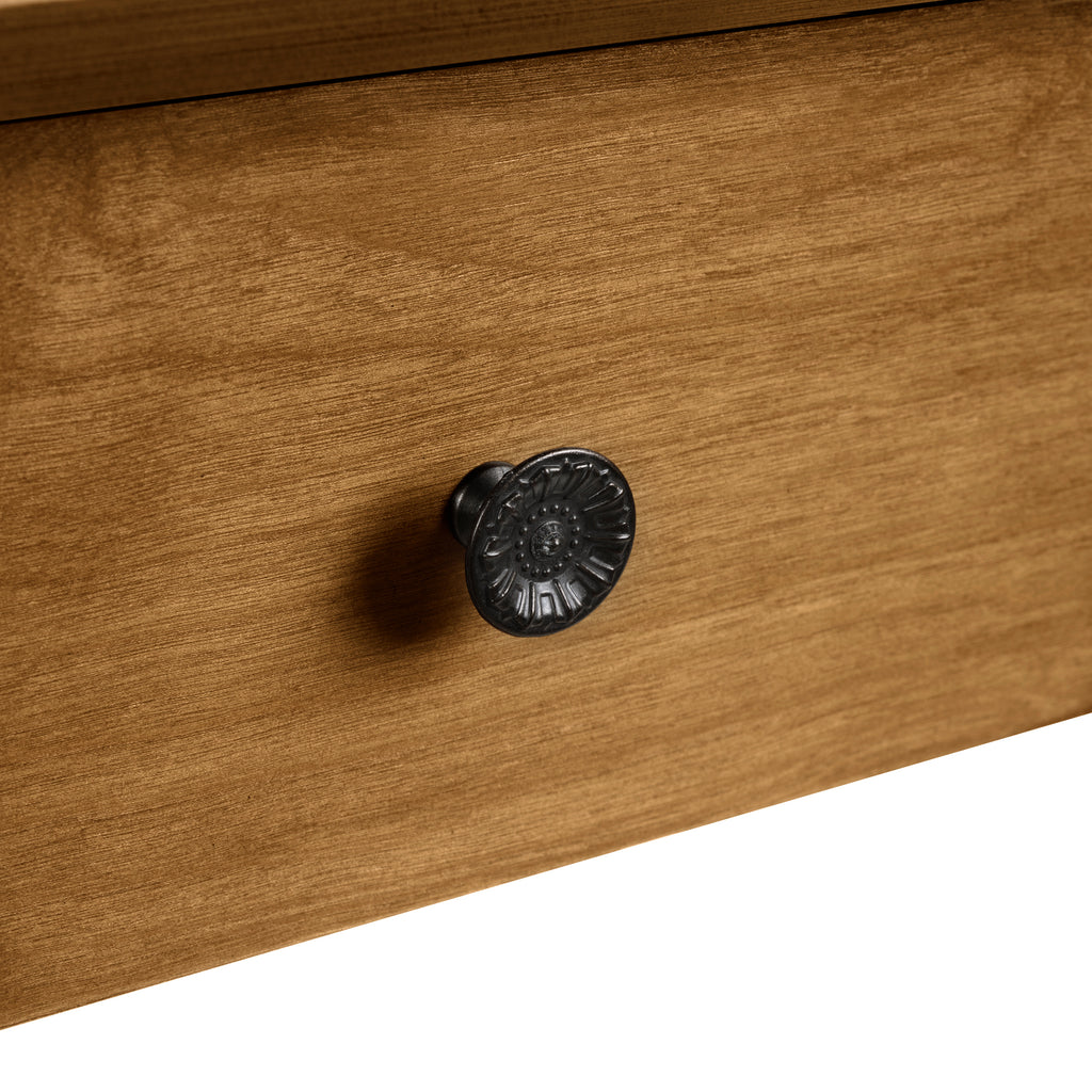 Material Tabletop& Lower Shelf: MDF with Birch wood Veneer; Legs: 100% Pine Wood; Drawer Outer Frame: Solid Pine Wood ; Drawer Handle: Zinc alloy material