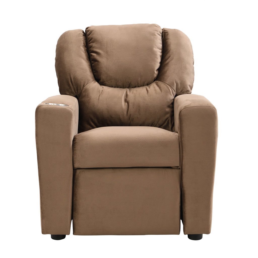 Sally Deluxe Kids Recliner Chair with Cup Holder and Footrest in Brown Velvet, 21.26 x 16.93 x 26.38 inches