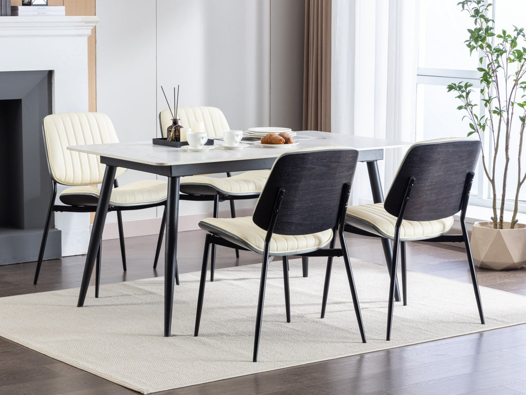 A&A Furniture, Dining Chairs Set of 2 Mid Century Modern Retro Faux Leather Chair with Walnut Bentwood Back Upholstered Seat Metal Legs Adjustable Foot for Kitchen Dining Room Chairs(Beige PU)