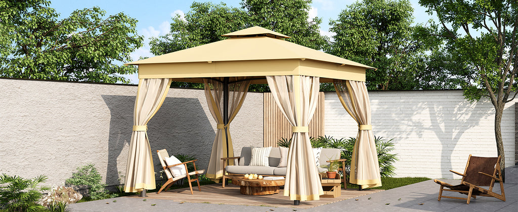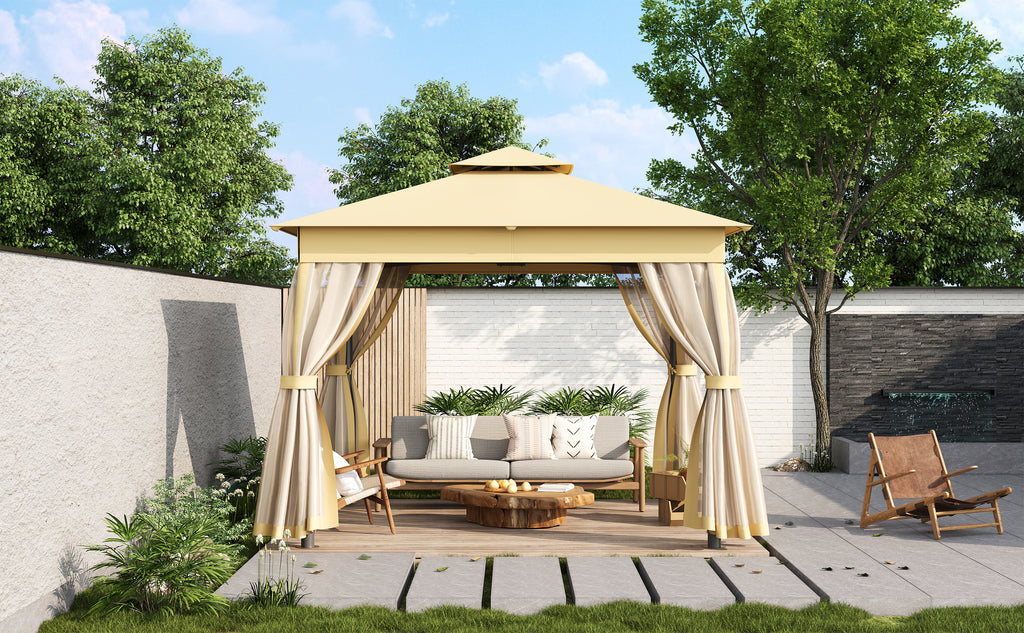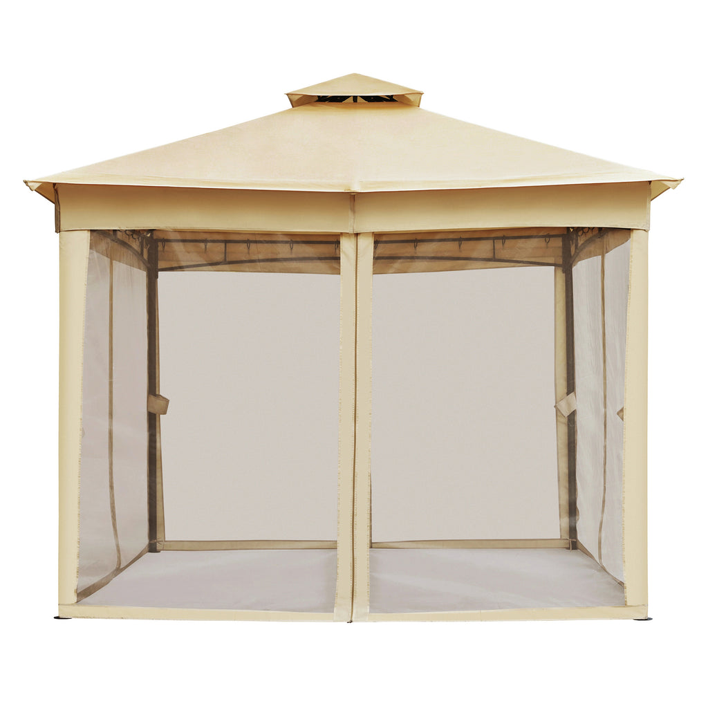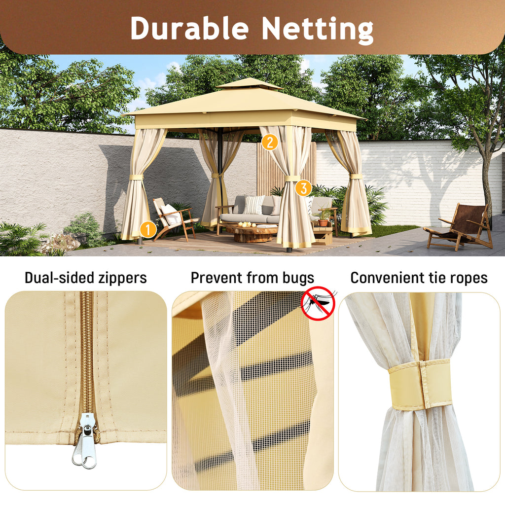 TREXM 10x10 Outdoor Gazebo Tent with Double Roofs, Patio Gazebo with Mosquito Netting, Patio Canopy for Backyard, Garden, Lawn and Deck (Beige)