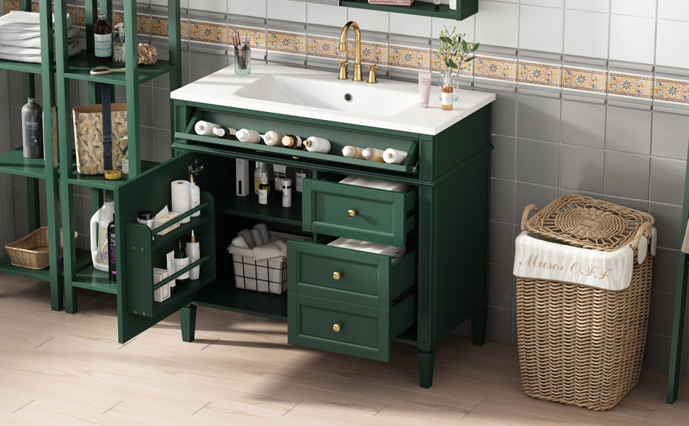 36'' Bathroom Vanity with Top Sink, Modern Bathroom Storage Cabinet with 2 Drawers and a Tip-out Drawer, Single Sink Bathroom Vanity