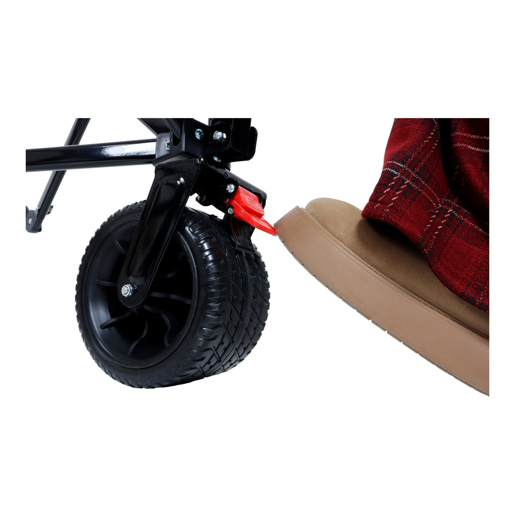 • Smooth Handling and SafetyThe camping handcart is designed for smooth and comfortable use. The adjustable drawbar allows you to pull and steer the cart with ease, ensuring it stays at a comfortable height while remaining clean. Additionally, the two wheel brakes on the 360° swivel wheels provide added safety and control, especially on sloped terrain or when stopping near your car. The large, wide wheels are ideal for various surfaces, including sand and gravel, rolling smoothly and quietly.