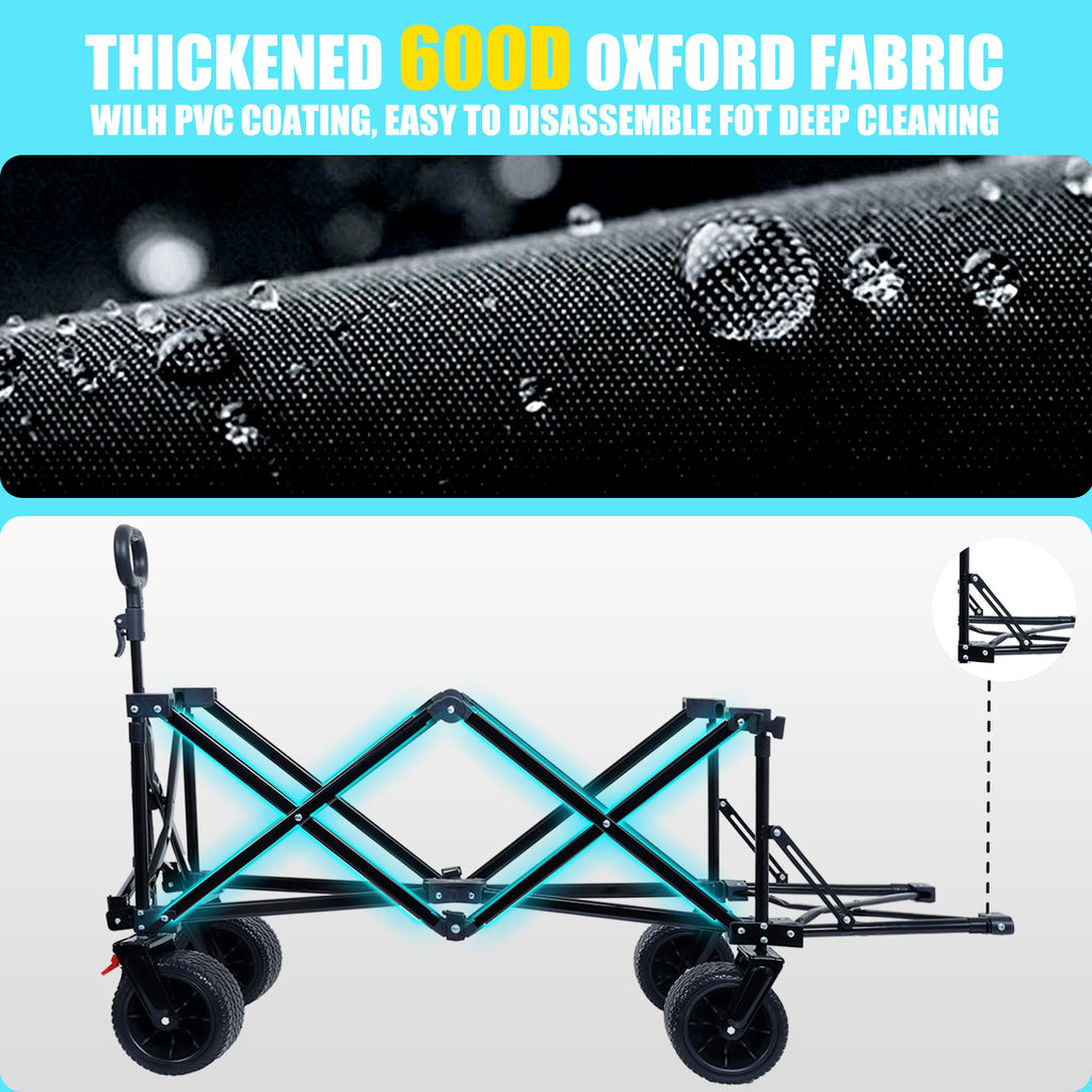 Foldable Wagon with Extended Tailgate, Waterproof Dustproof UV Resistant Wagon Rain Covers, Heavy Duty 400LBS, Large All-Terrain Beach Wheels