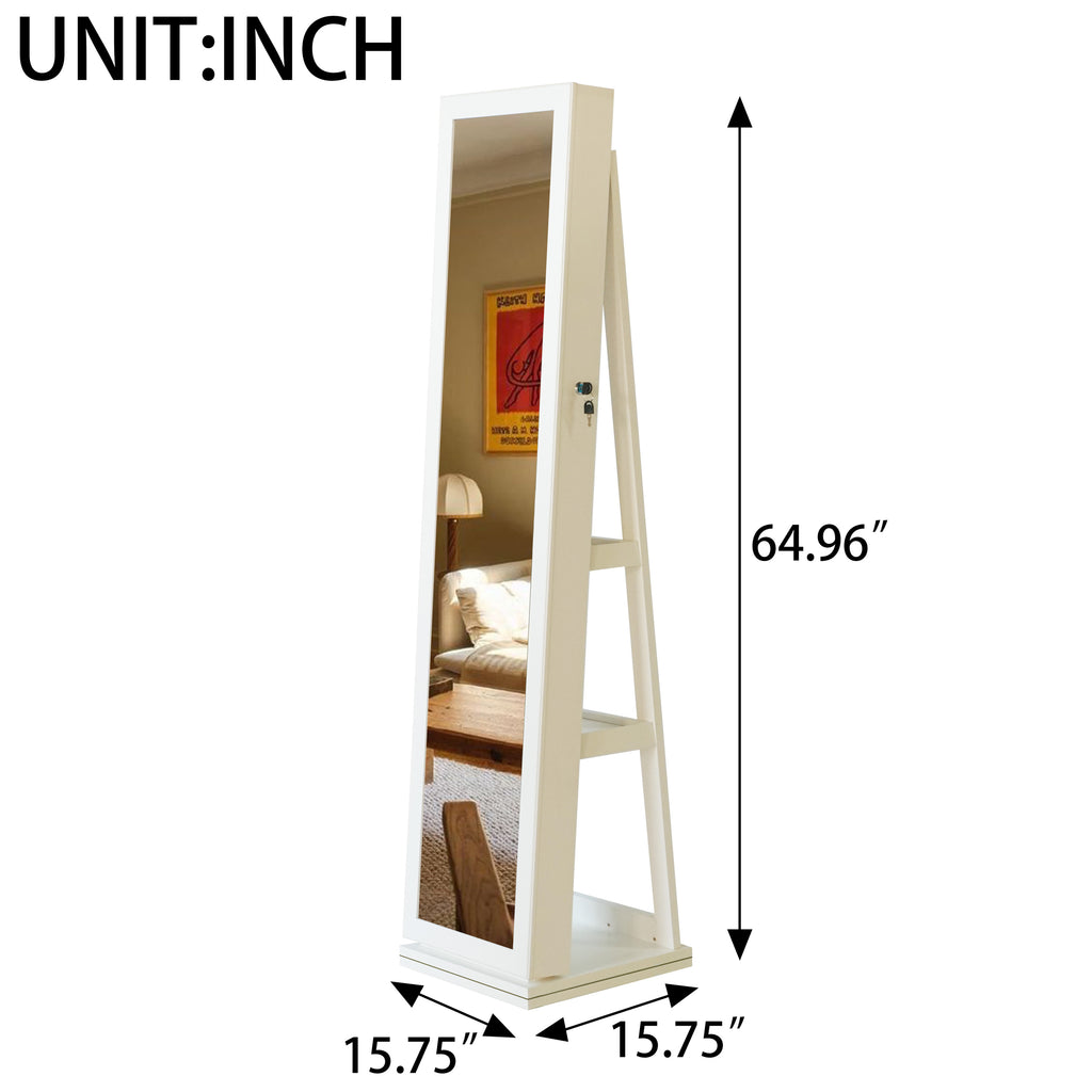 • Full Length Mirror 360° Swivel Jewelry Cabinet With Led Light