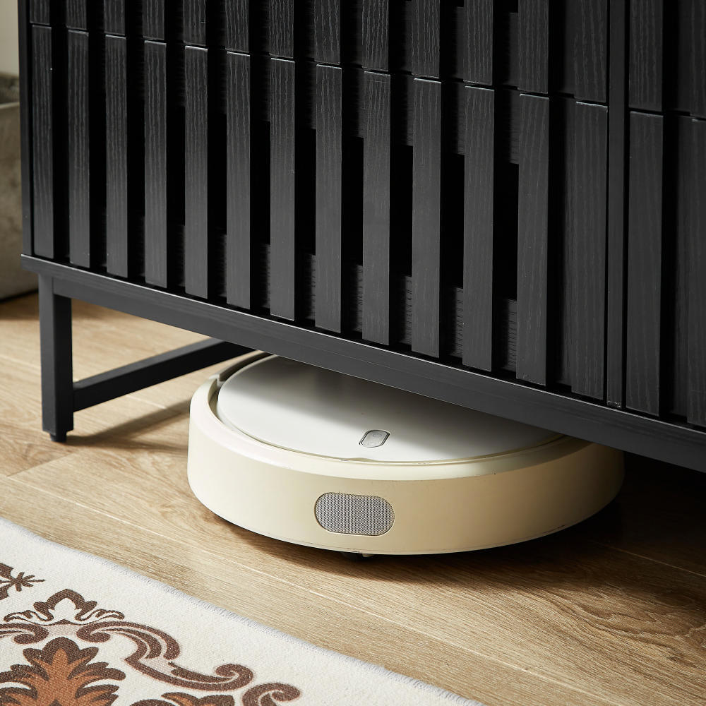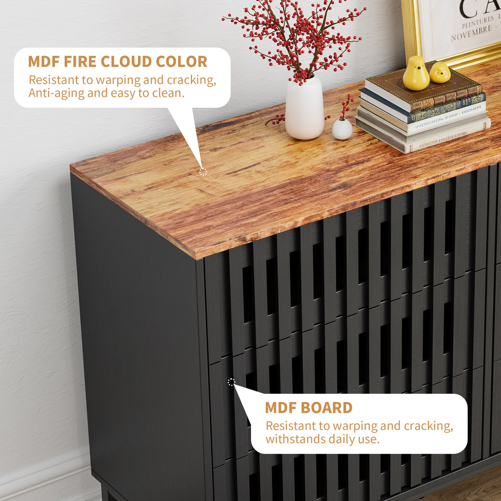 The Black storage cabinet with Grille striped doors, bringing an eye-catching design to your living room, dining room, or office.