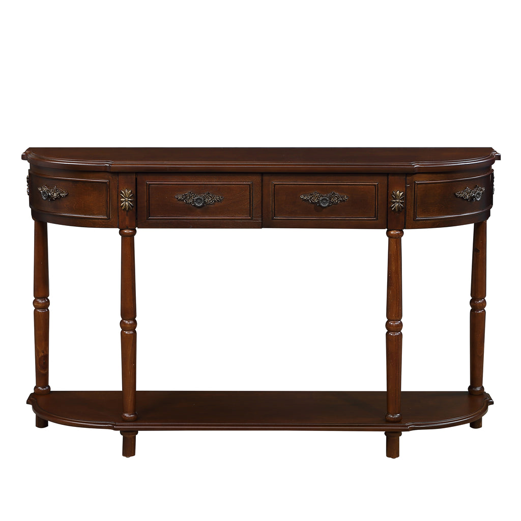 - 【Retro Style Console Table】:Our console table is retro style. The 4 Roman legs and the intricate carvings on the drawers give this table a classical-elegant charm that adds a touch of luxury to your room. You can use it as a commodity shelf to support daily essentials. You can also use it as a sofa table or a graceful book case to store books or magazines in hallway, entryway, bedroom, living room.